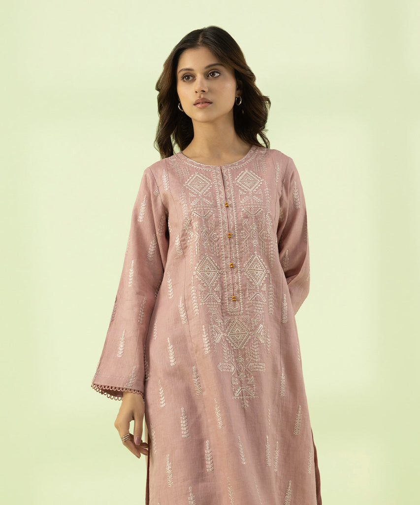 2-Piece A line Shirt with Trousers Make a refreshing statement with pink A-line featuring intricate embroidery paired...