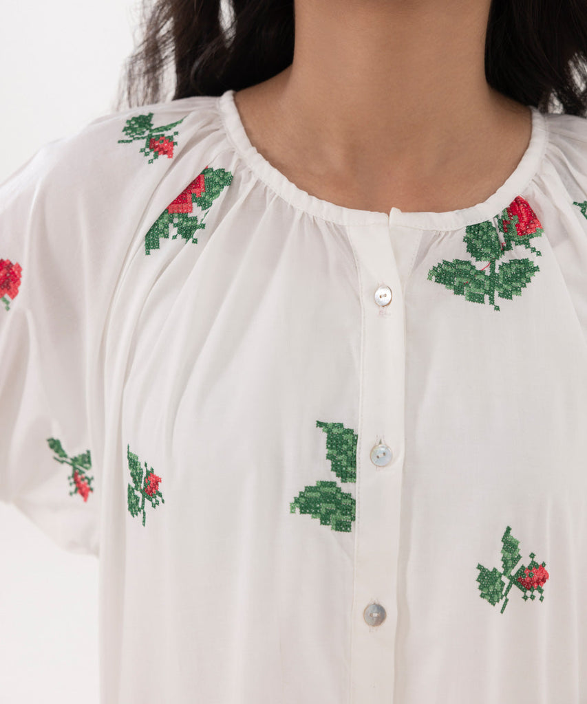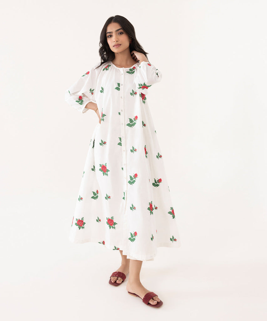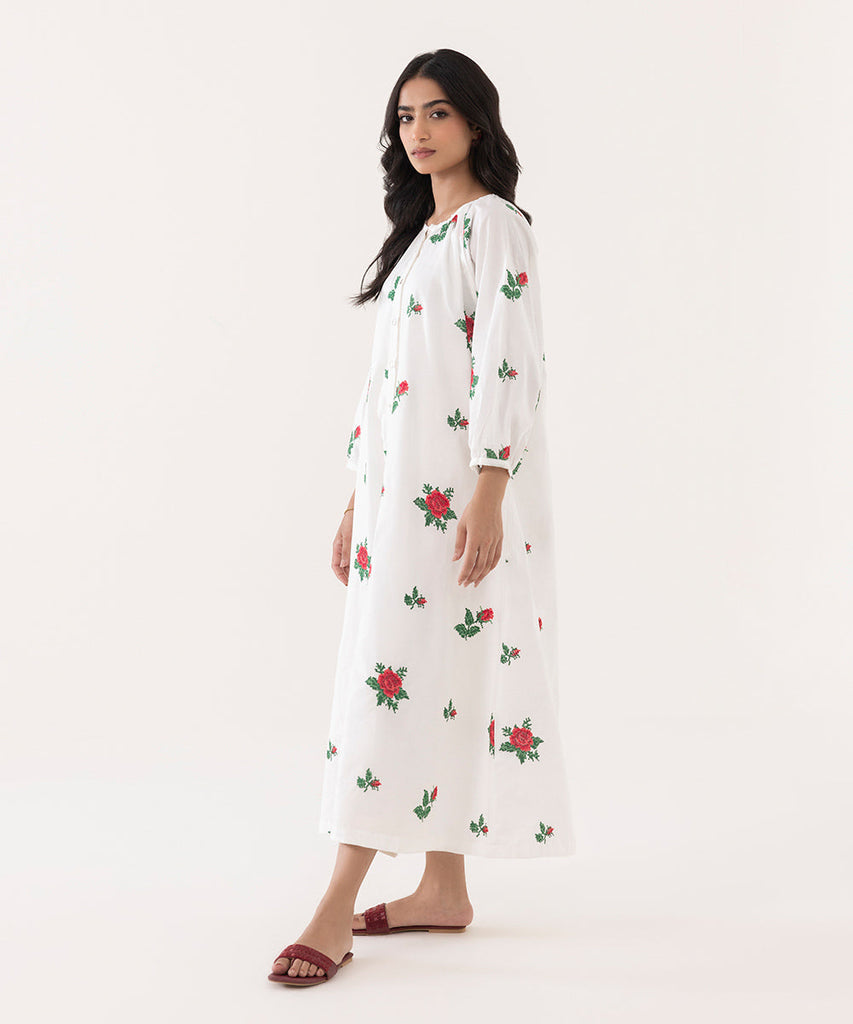 Dyed Embroidered Front, Dyed Embroidered Back, Full Sleeves With Embroidery, Round Neckline