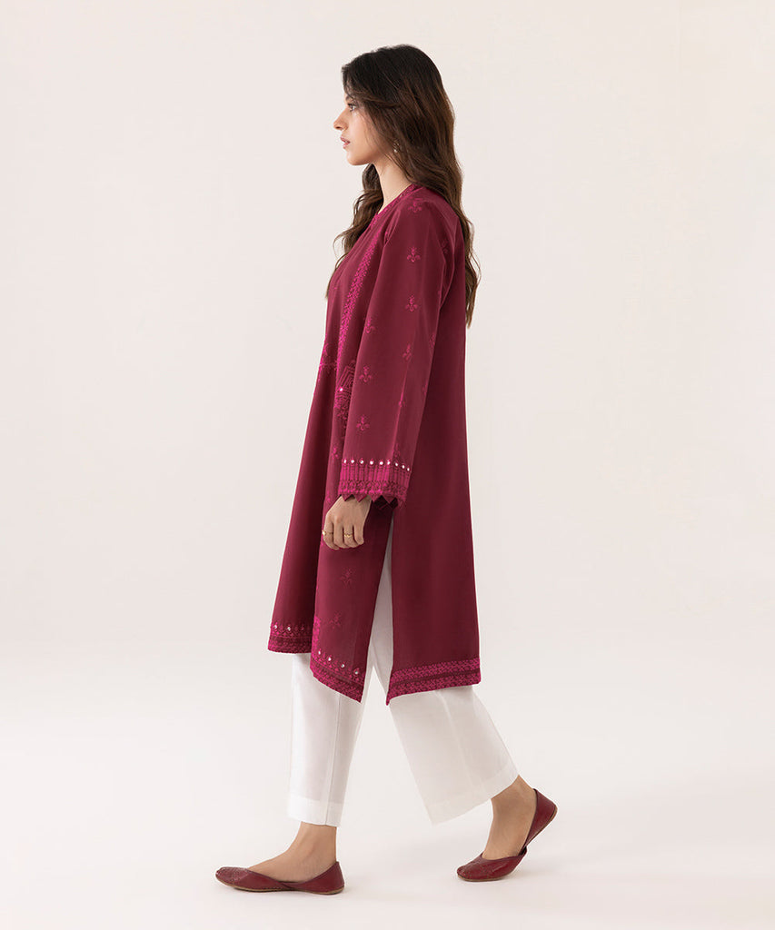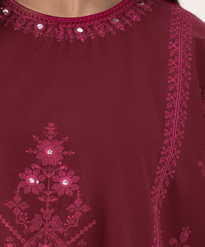 A-Line Shirt Refresh your wardrobe with our maroon A-line accented with intricate embroidery.