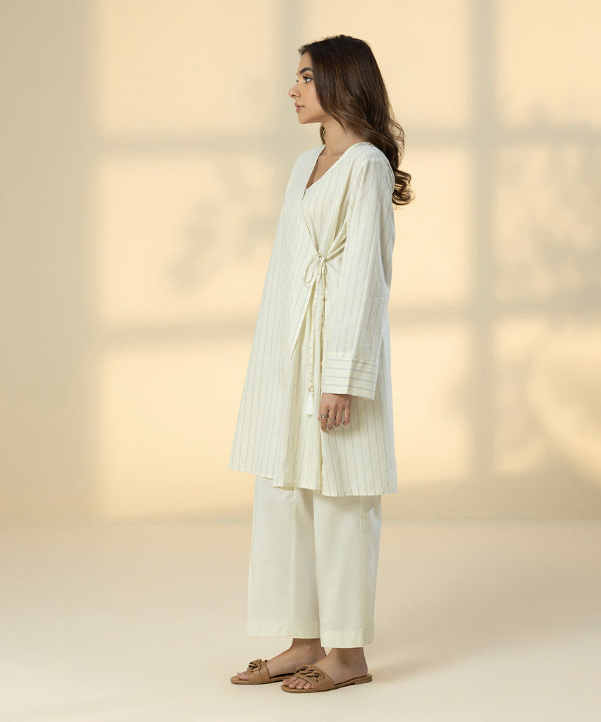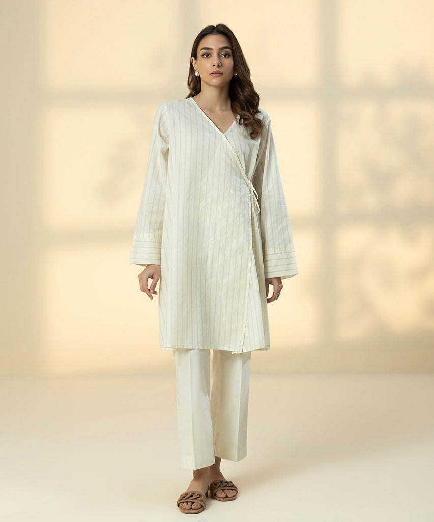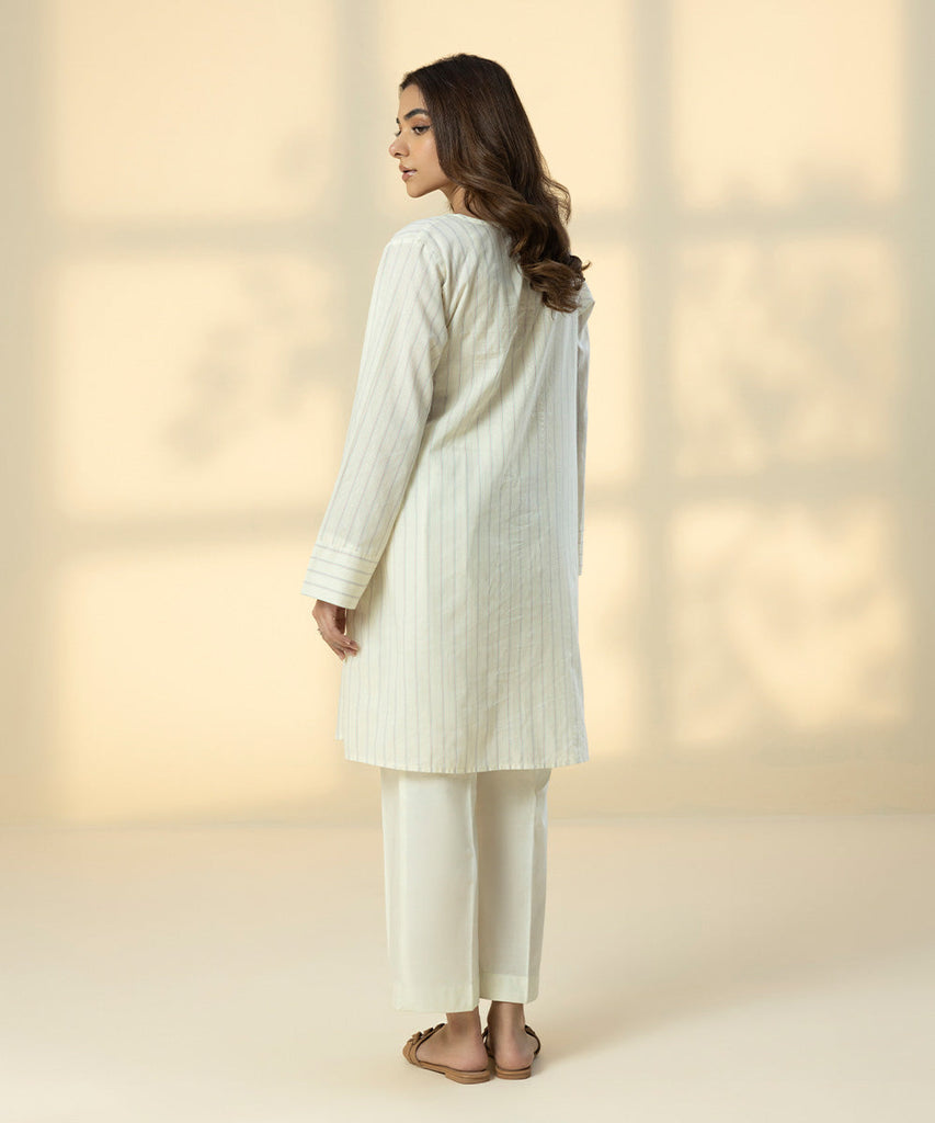 This summer opt for neutral hues with our fusion white medium length shirt with a V-neckline. Details: Plain front, P...