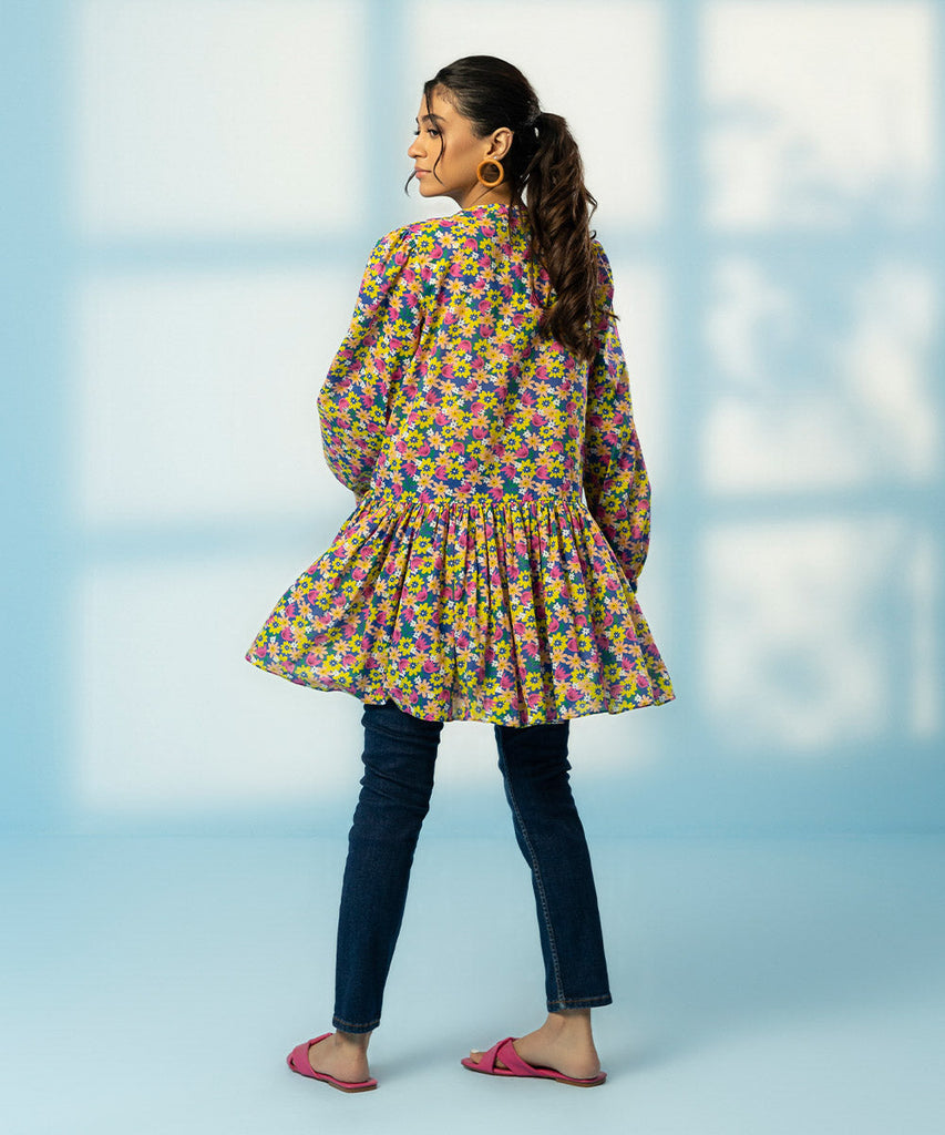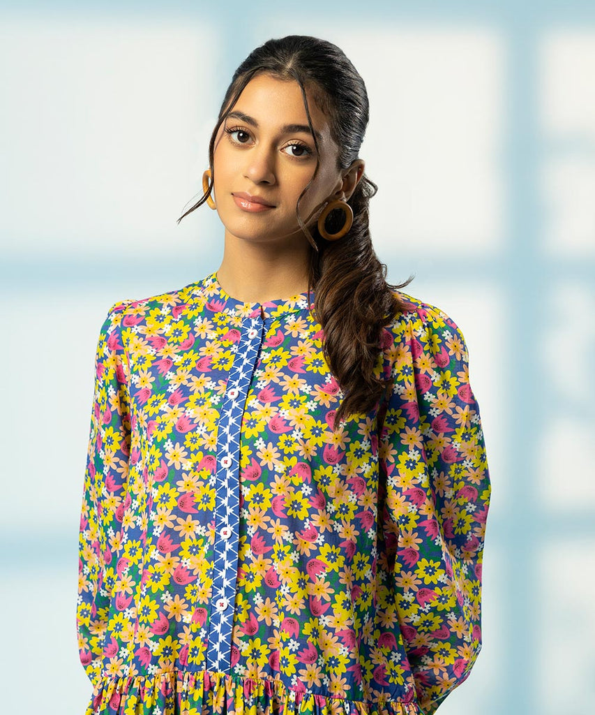 Printed front, Printed back, Band Neckline with Placket, Full Sleeves.