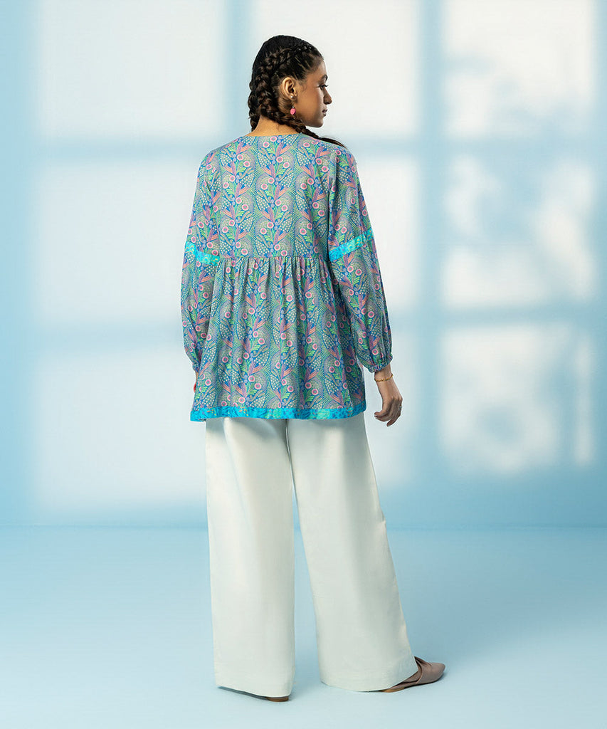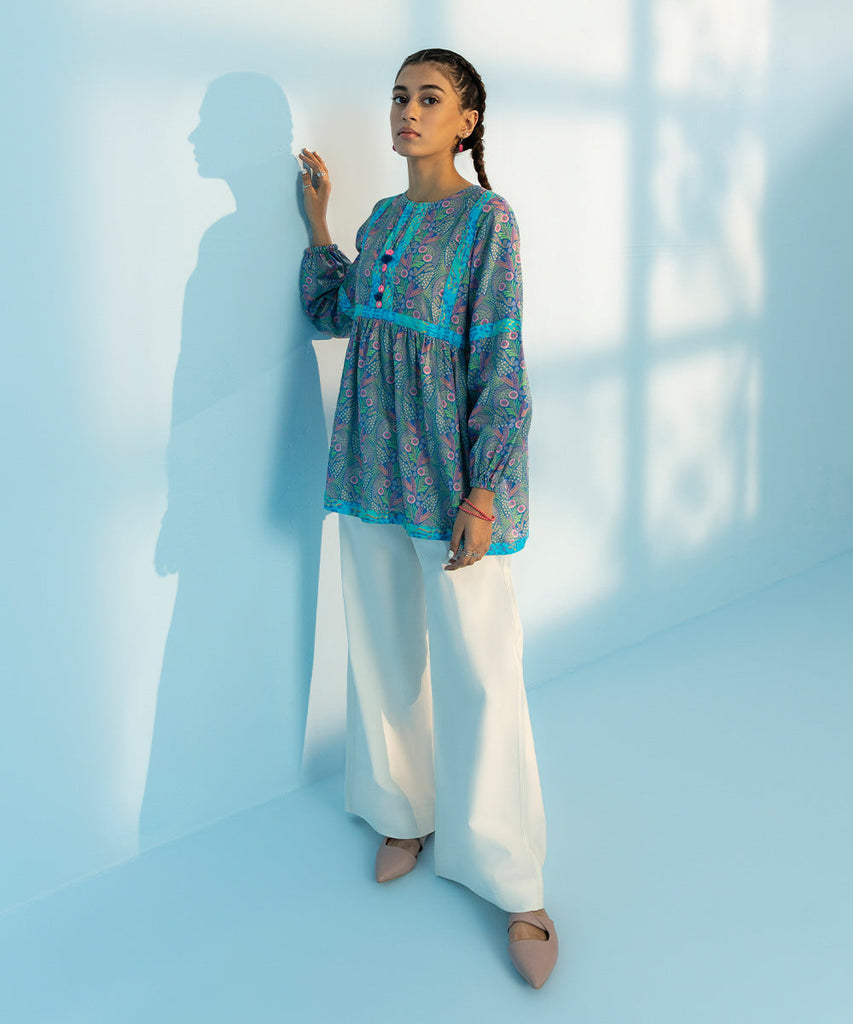 Printed front, Printed back, Round Neckline with slit, Full Sleeves.