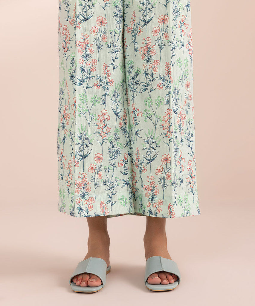 Complete your outfit with our pastel blue printed culottes. CulottesColour: Pastel BlueFabric: Seersucker SIZE & ...