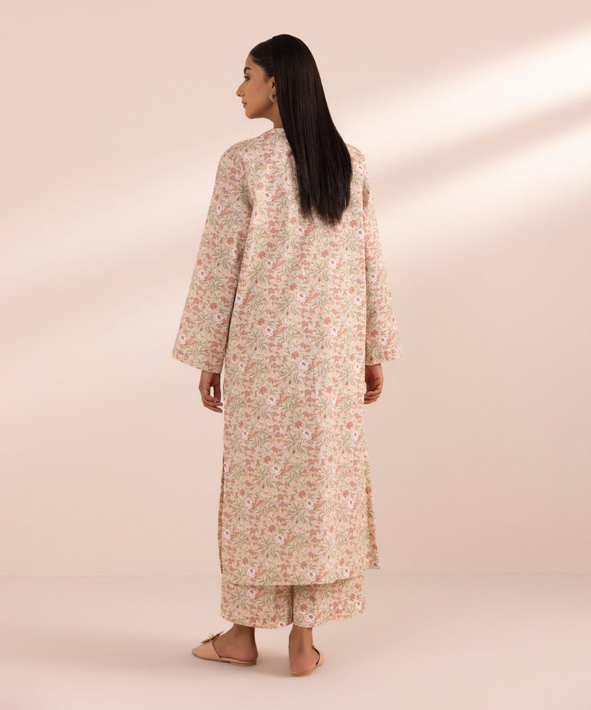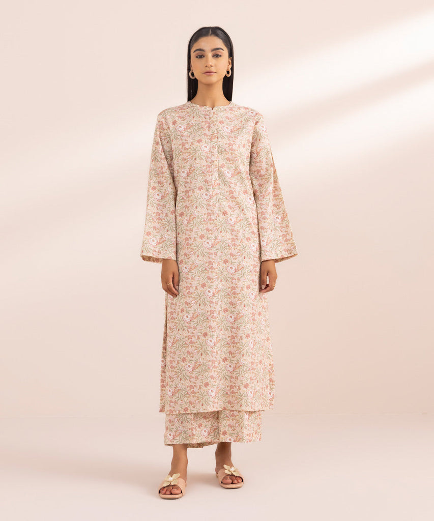 Printed Front, Printed Back, Full Sleeves, Band Neckline with placket
