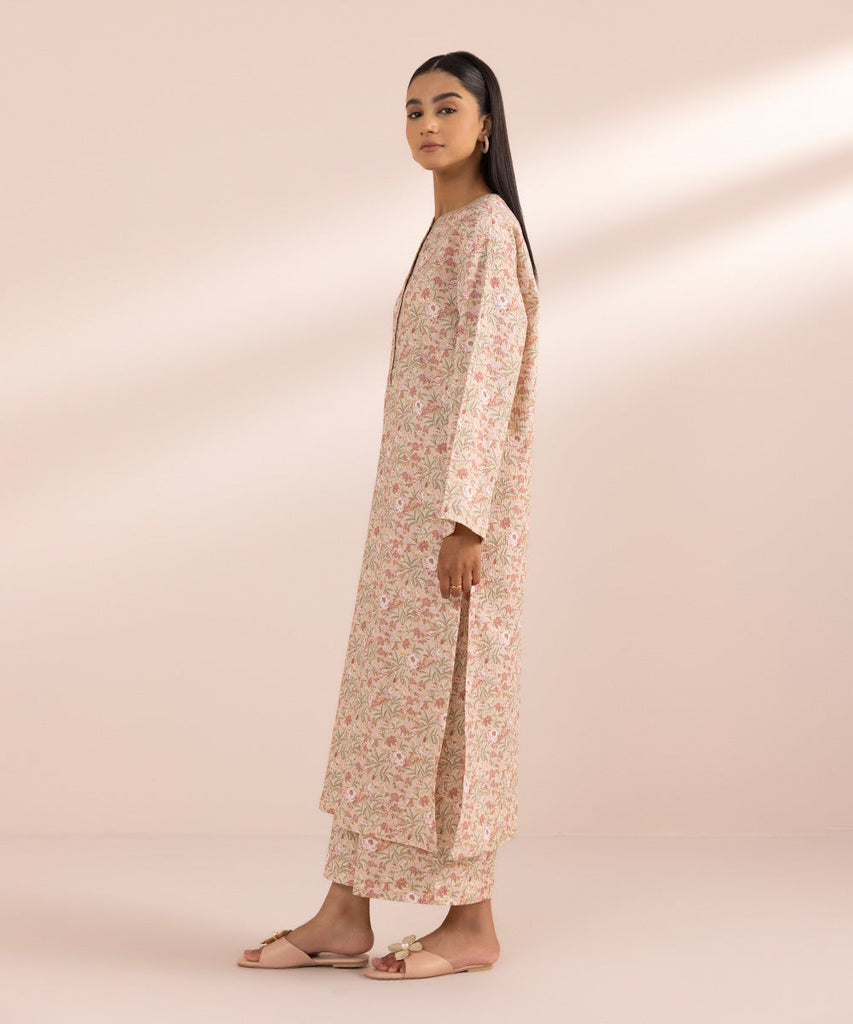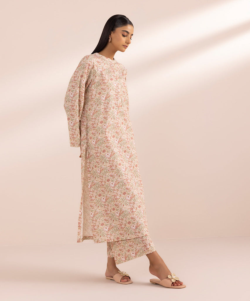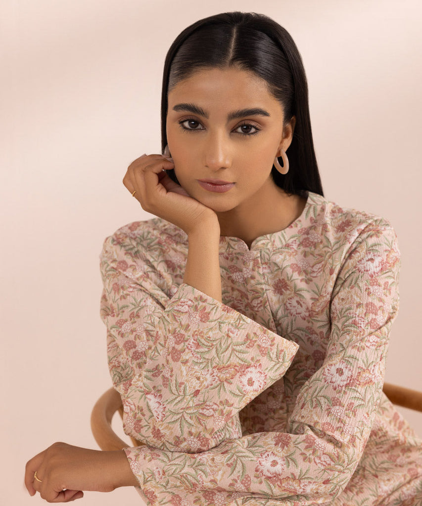 Elevate your summer style in our tea pink, printed straight shirt featuring a band neckline with placket.