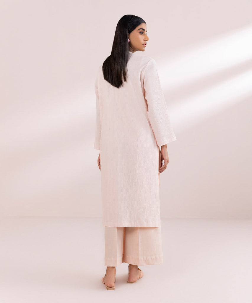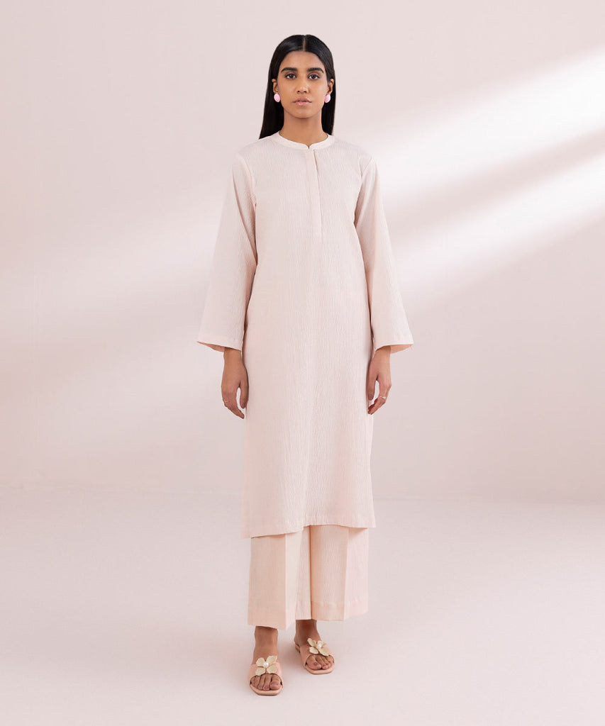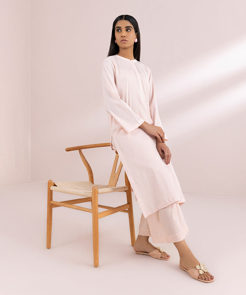 Straight KurtaStandout with your summer style in our soft pink straight shirt featuring a band neckline with placket....