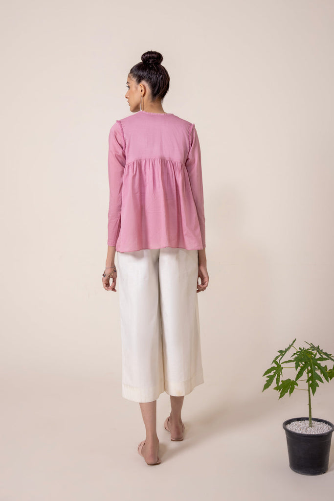 Fusion Shirt Look like a vision in this ready to wear textured lawn fusion top imbued in a candy pink colour with a r...