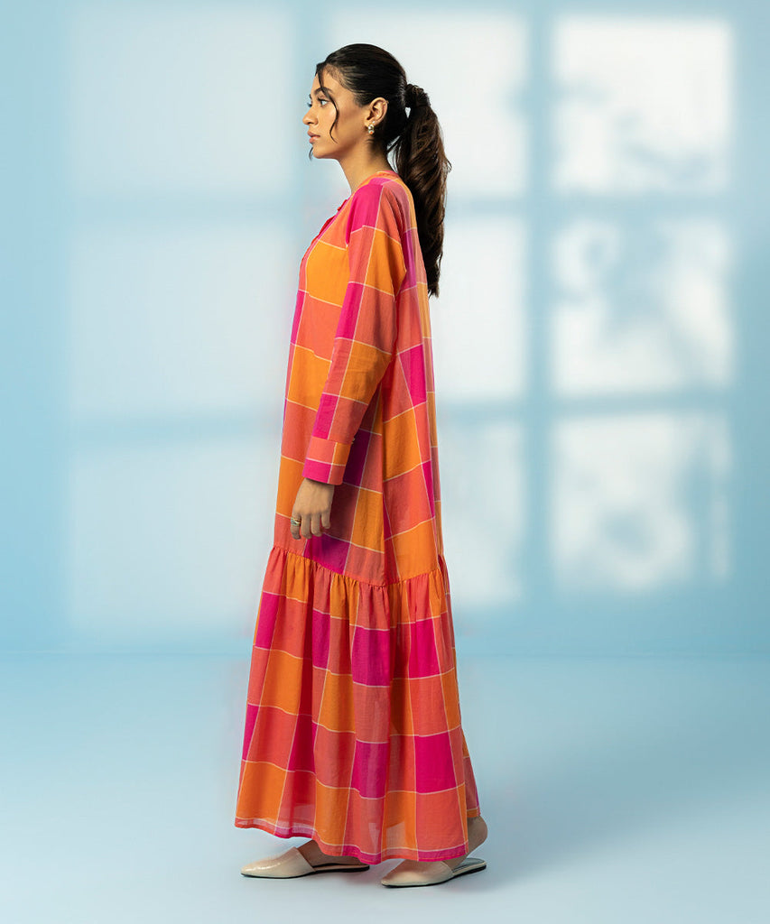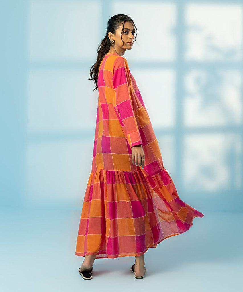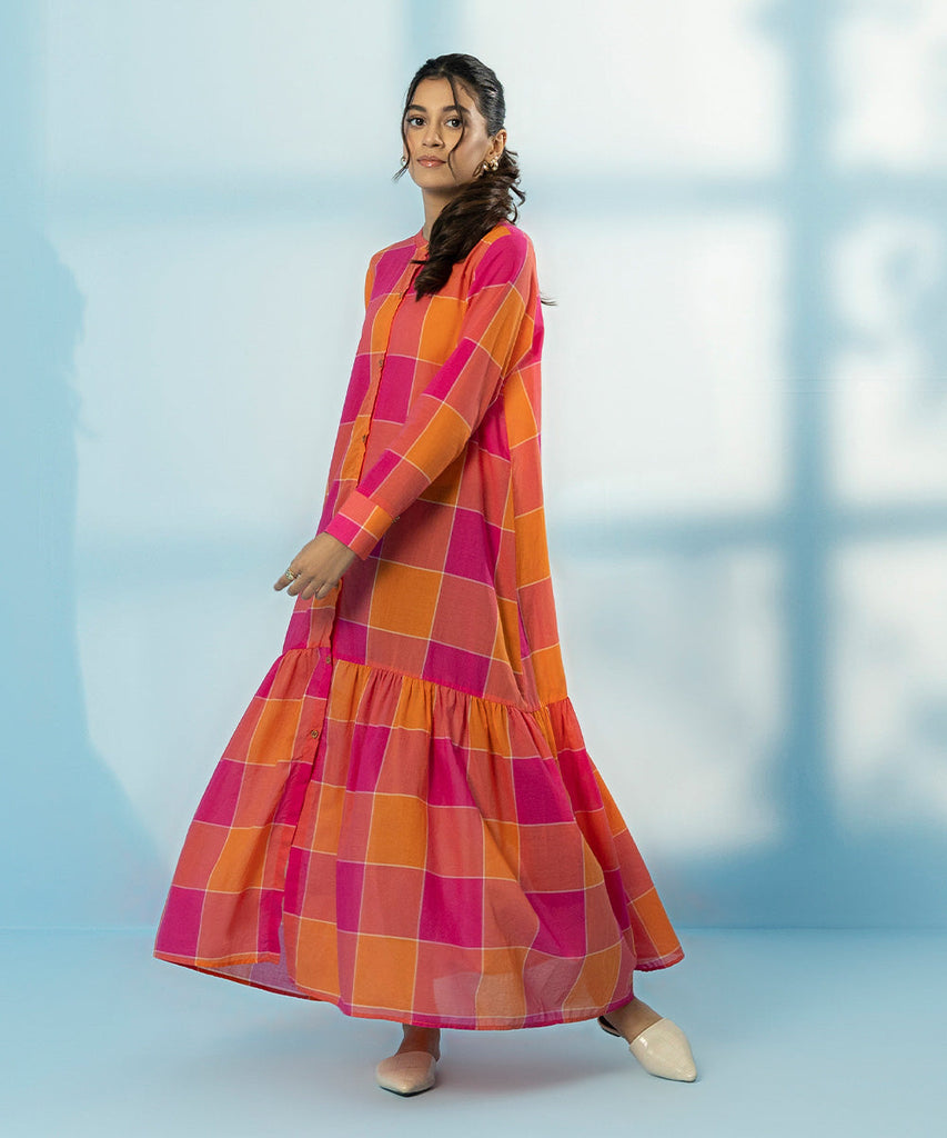 Plain front, Plain Back, Round Neckline with placket, Full Sleeves.