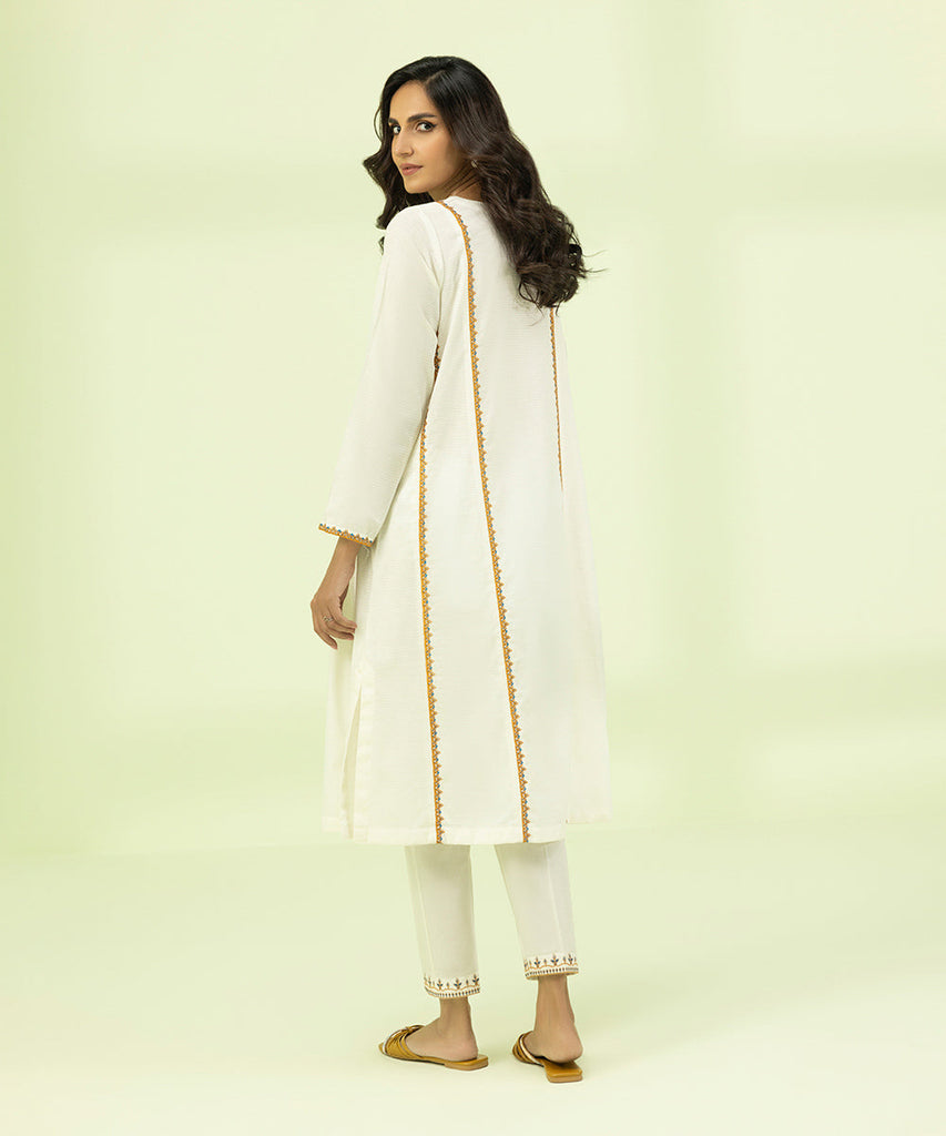 Flarred A line Shirt Elevate your style with off white flared A-line accented with embroidery. Details: Plain Front ...