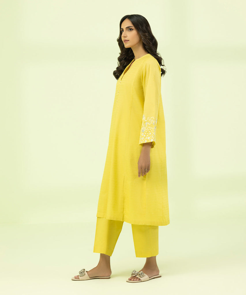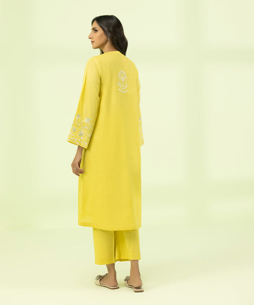Elevate your style with yellow A-line accented with embroidery.