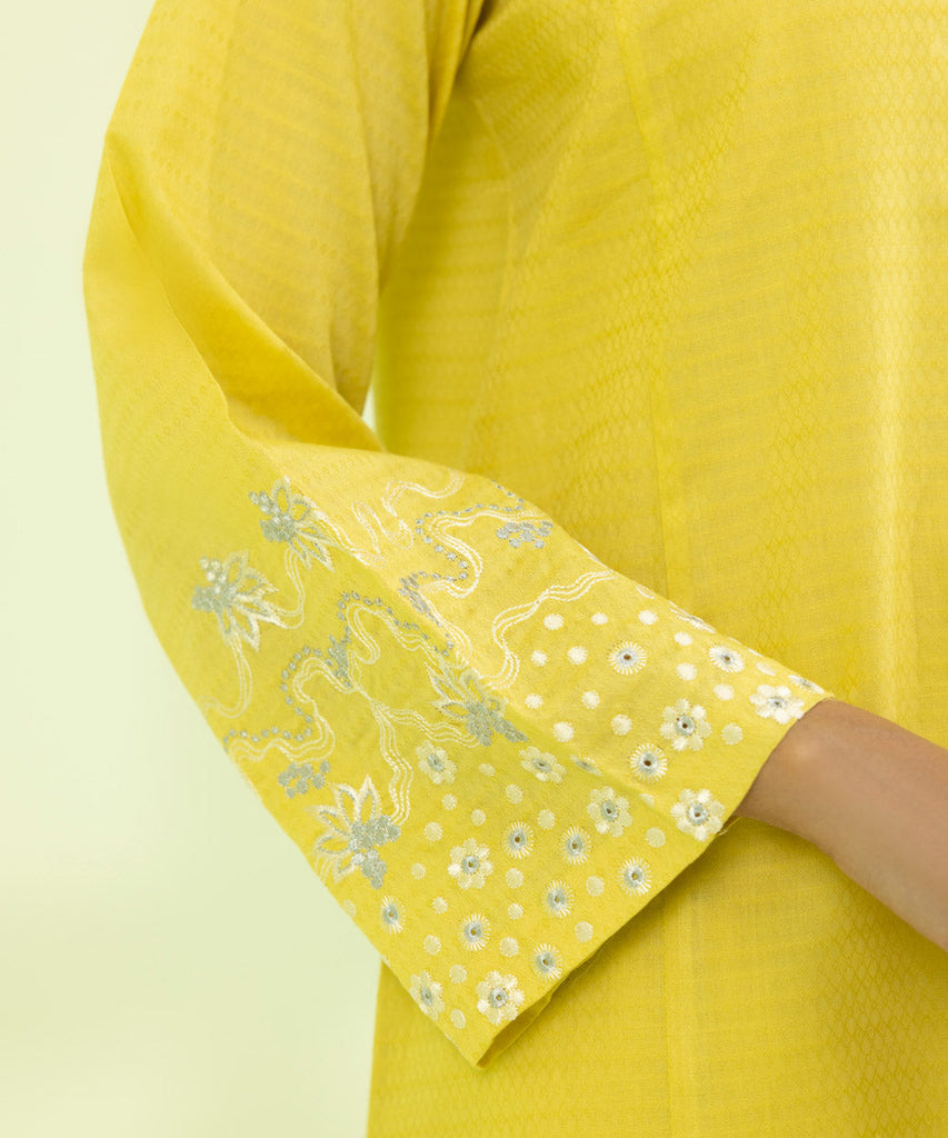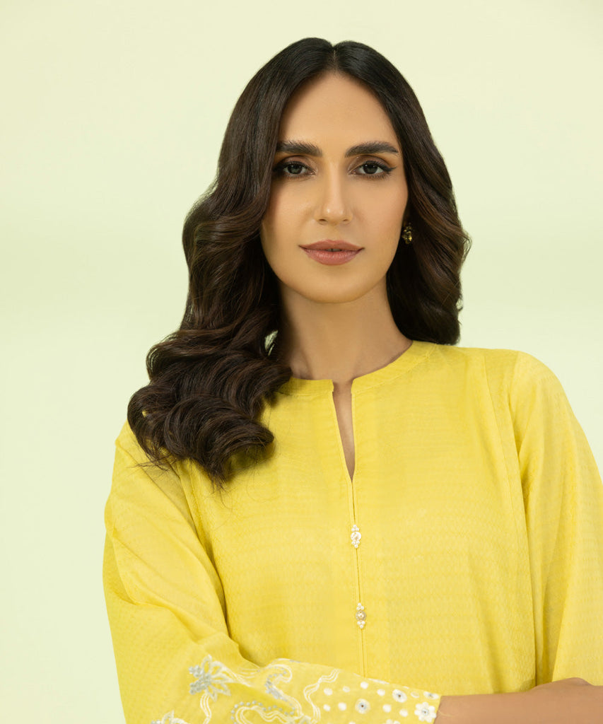 A line Shirt Elevate your style with yellow A-line accented with embroidery.