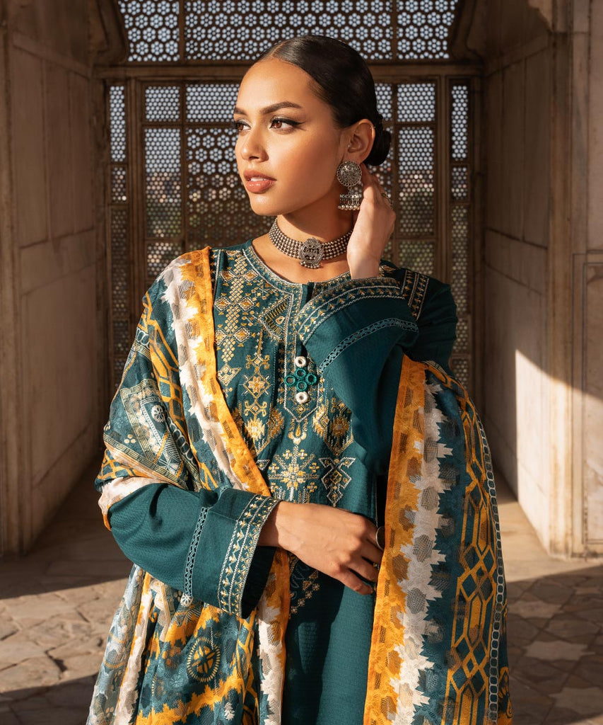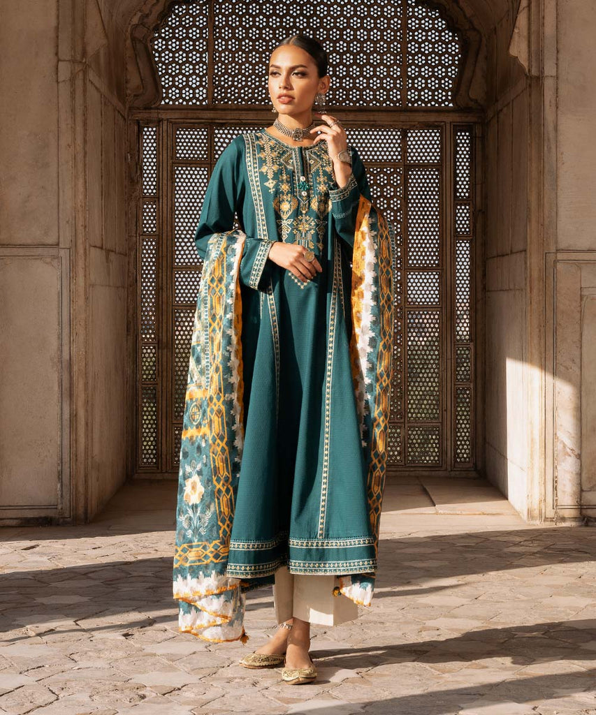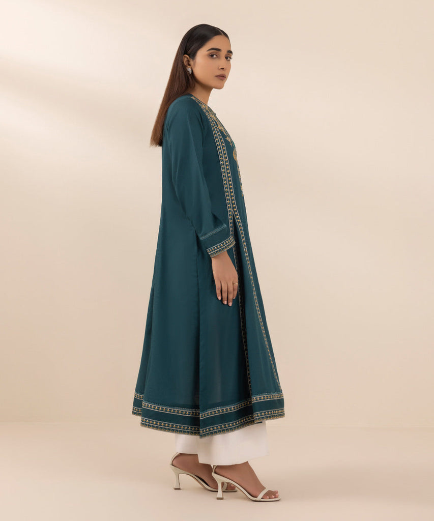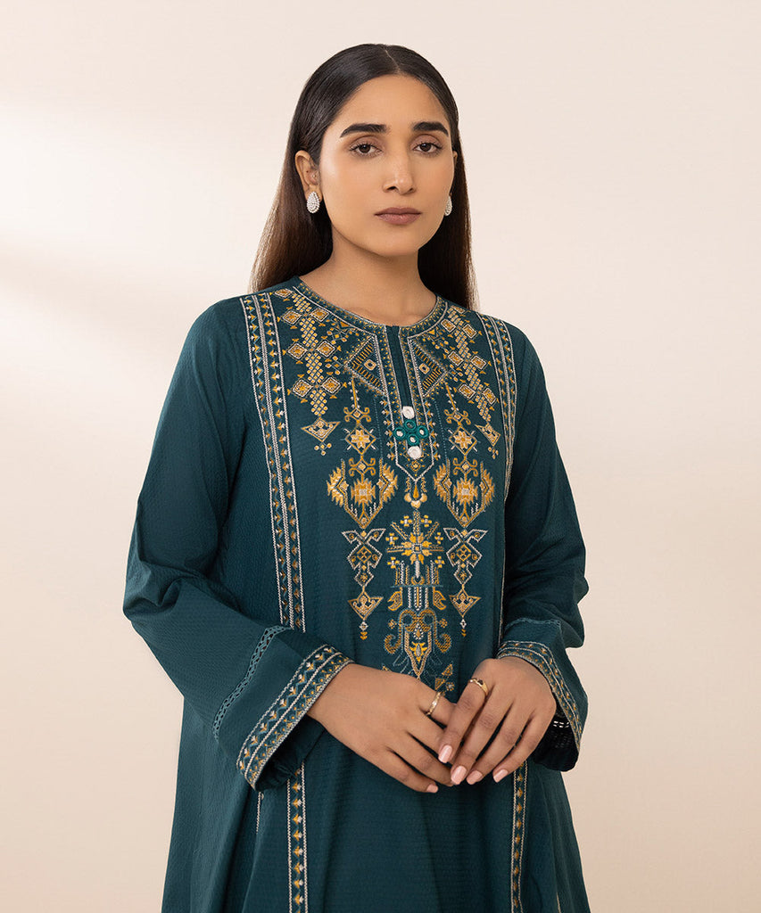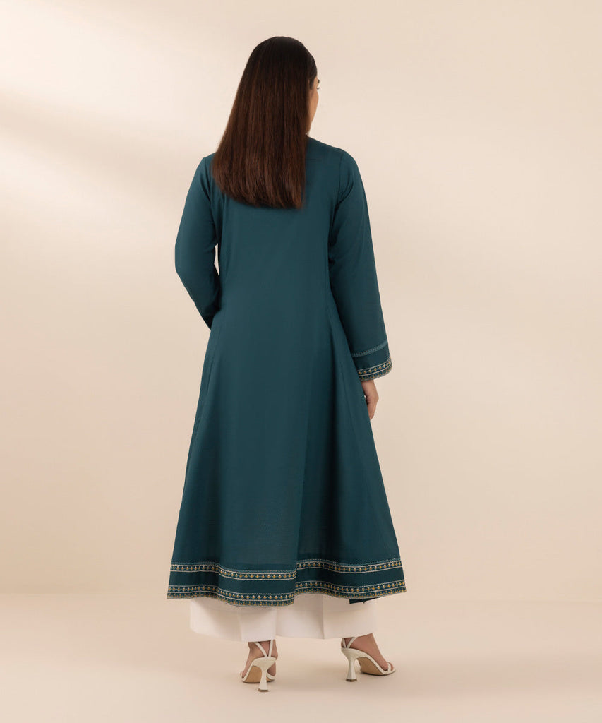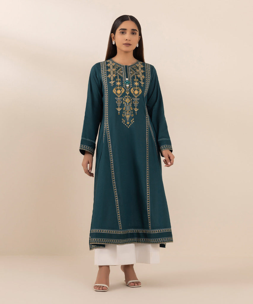 Dyed Front with Embroidery, Dyed Back with Embroidery, Full Sleeves, Round Neckline with a slit
