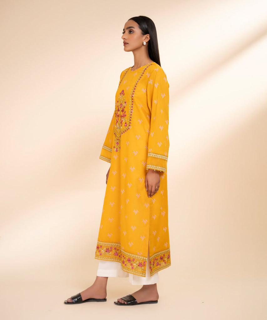 A-Line ShirtElevate your summer style with our embroidered A line bright mustard shirt featuring a round neckline.