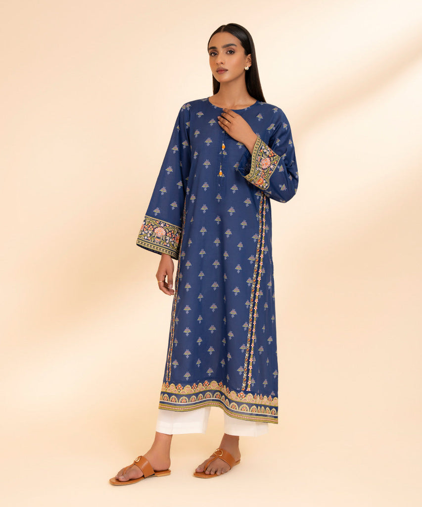 A-Line ShirtRefresh your Eid wardrobe with our midnight blue embroidered A-line shirt featuring a round neckline with...