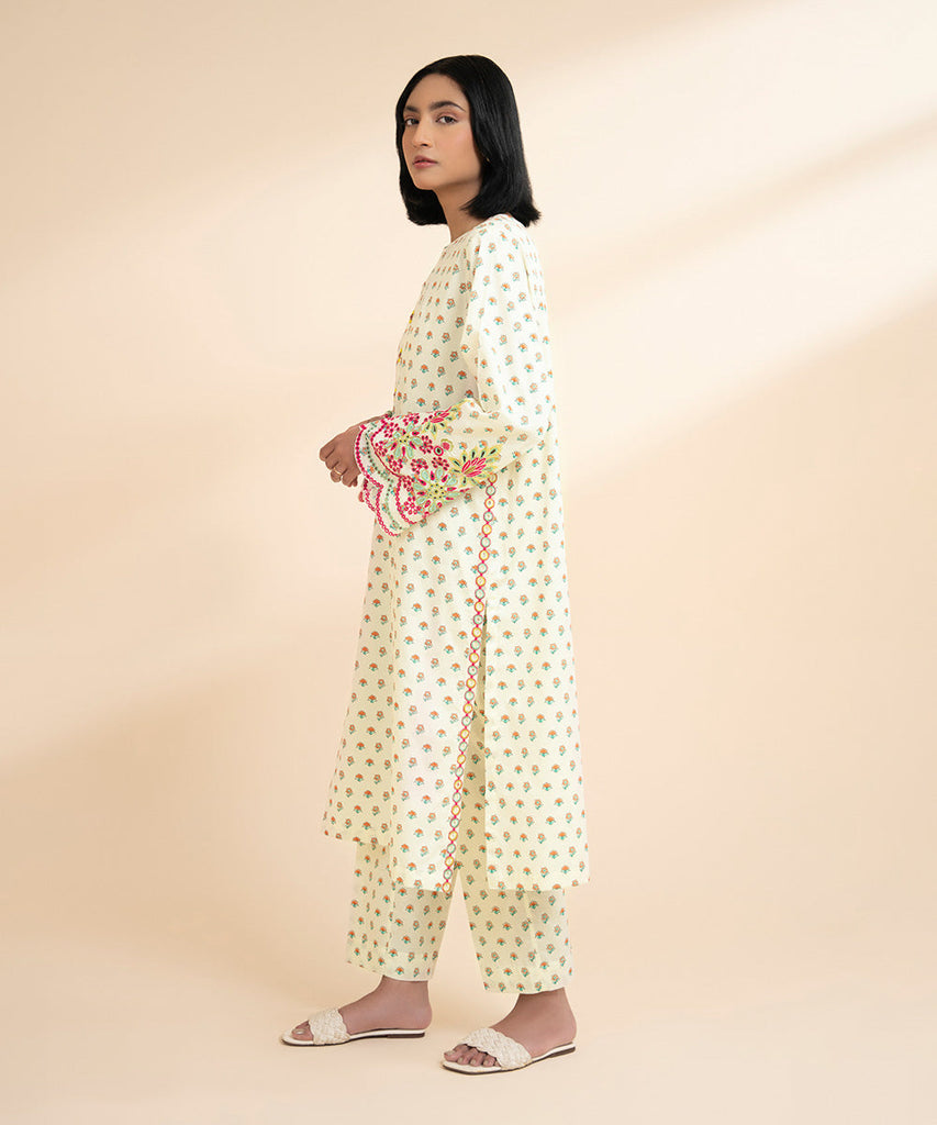 Printed Front with Embroidery, Printed Back, Full Sleeves, Keyhole Neckline