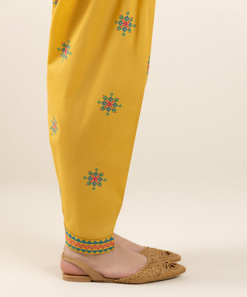 Complete your look with our printed golden yellow, shalwar. ShalwarColour: Golden YellowFabric: Textured Lawn SIZE &a...