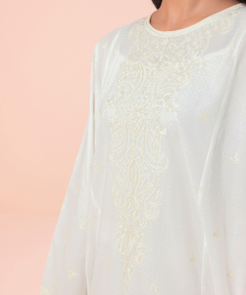Dyed Embroidered Front, Plain Back, Dyed Embroidered Full Sleeves, Crew Neckline