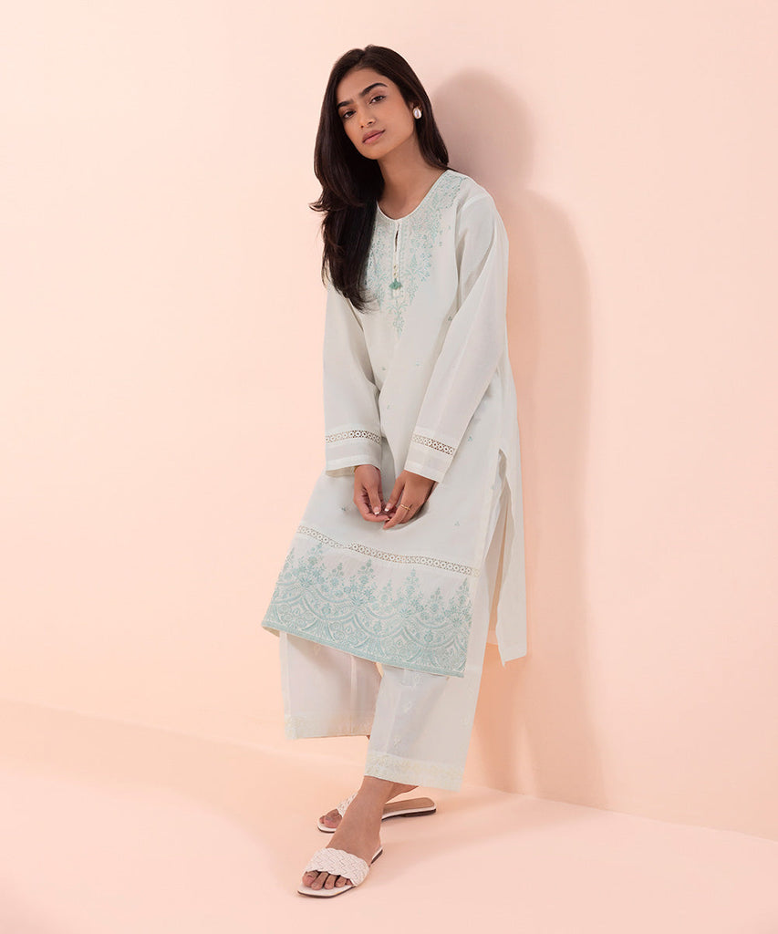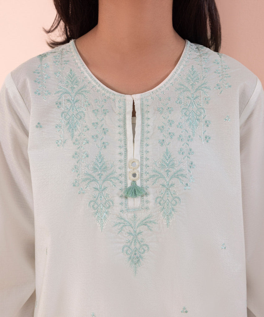 Dyed Embroidered Front, Plain Back, Dyed Full Sleeves, Crew Neckline