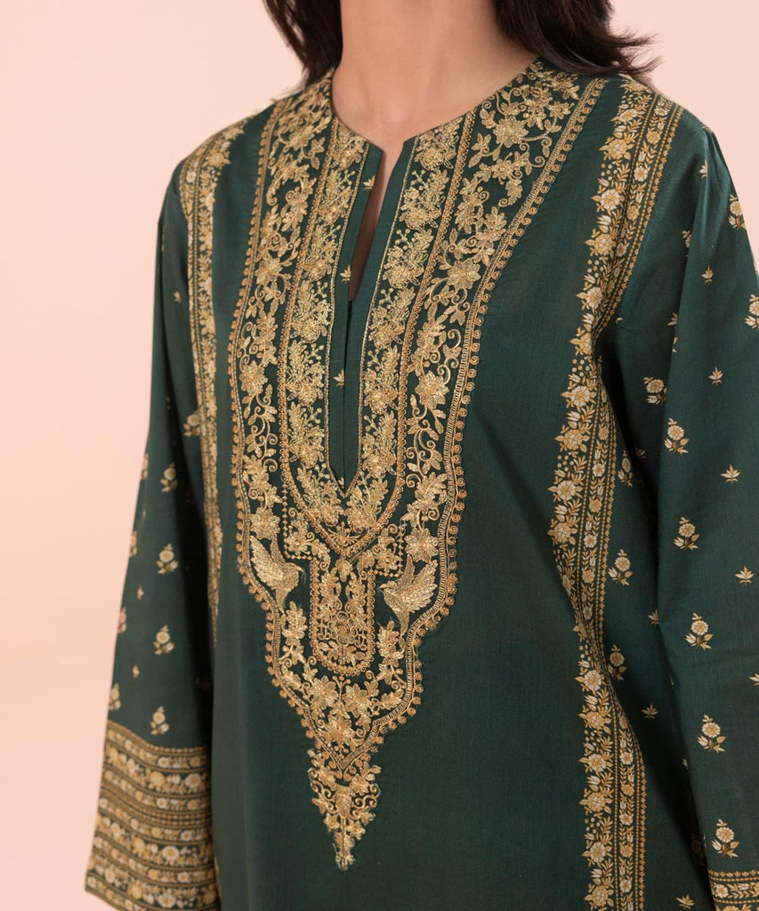 The perfect blend of modernity and tradition - our green embroidered straight silhouette is inspired from the artisanal prints and embroideries found across different regions of Pakistan.