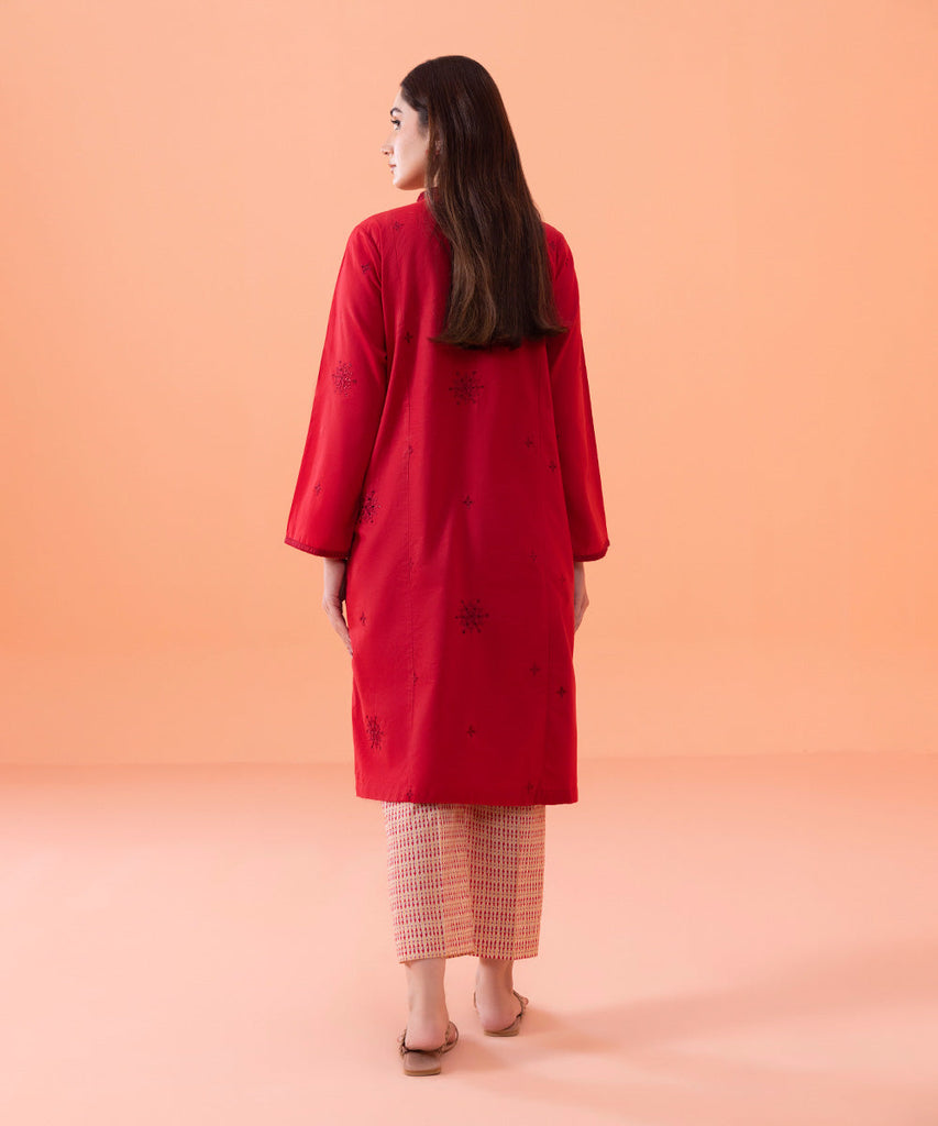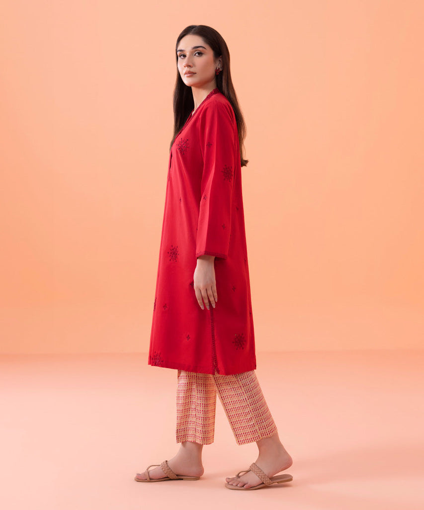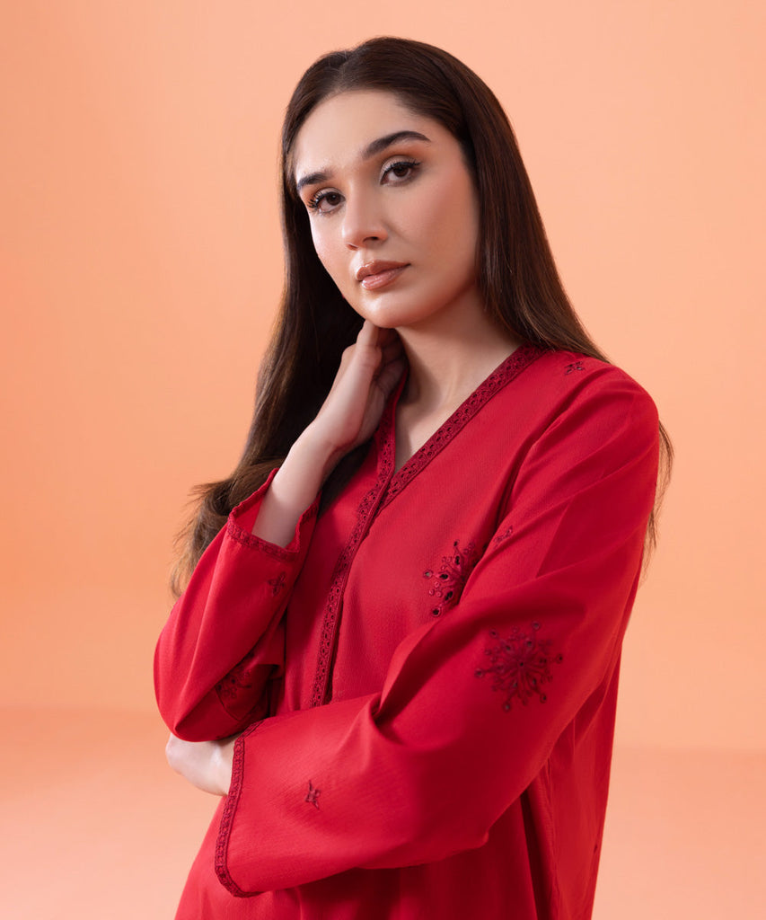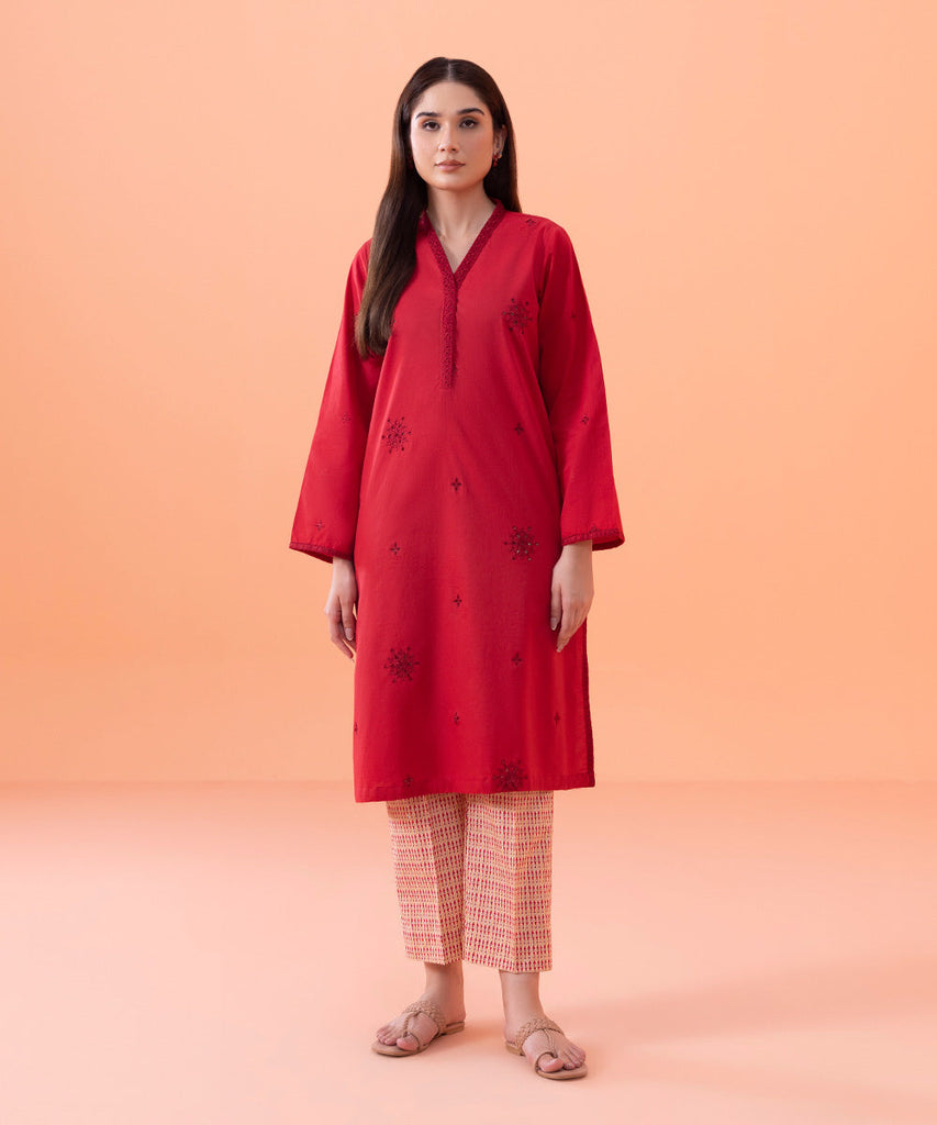 Straight Kurta Our rich red straight silhouette features intricate embroidery.