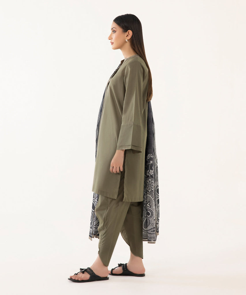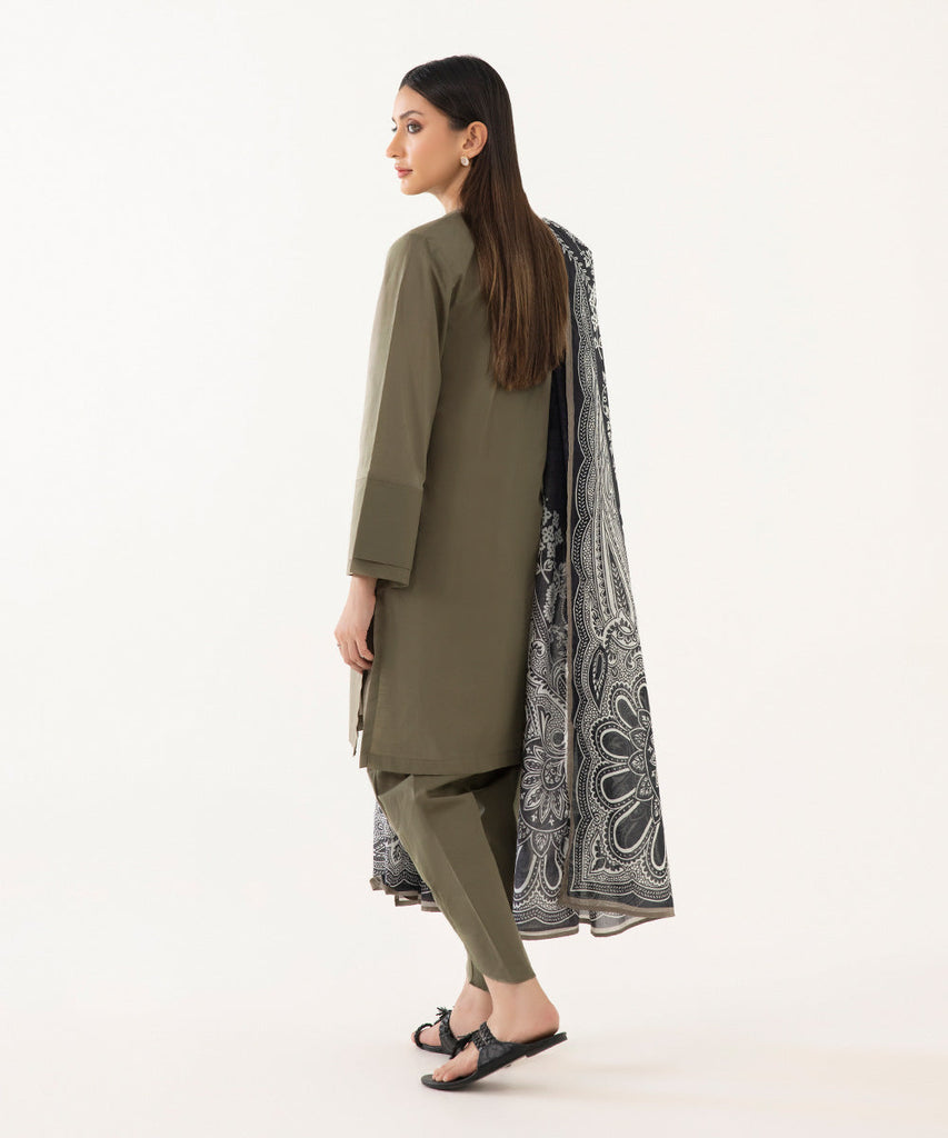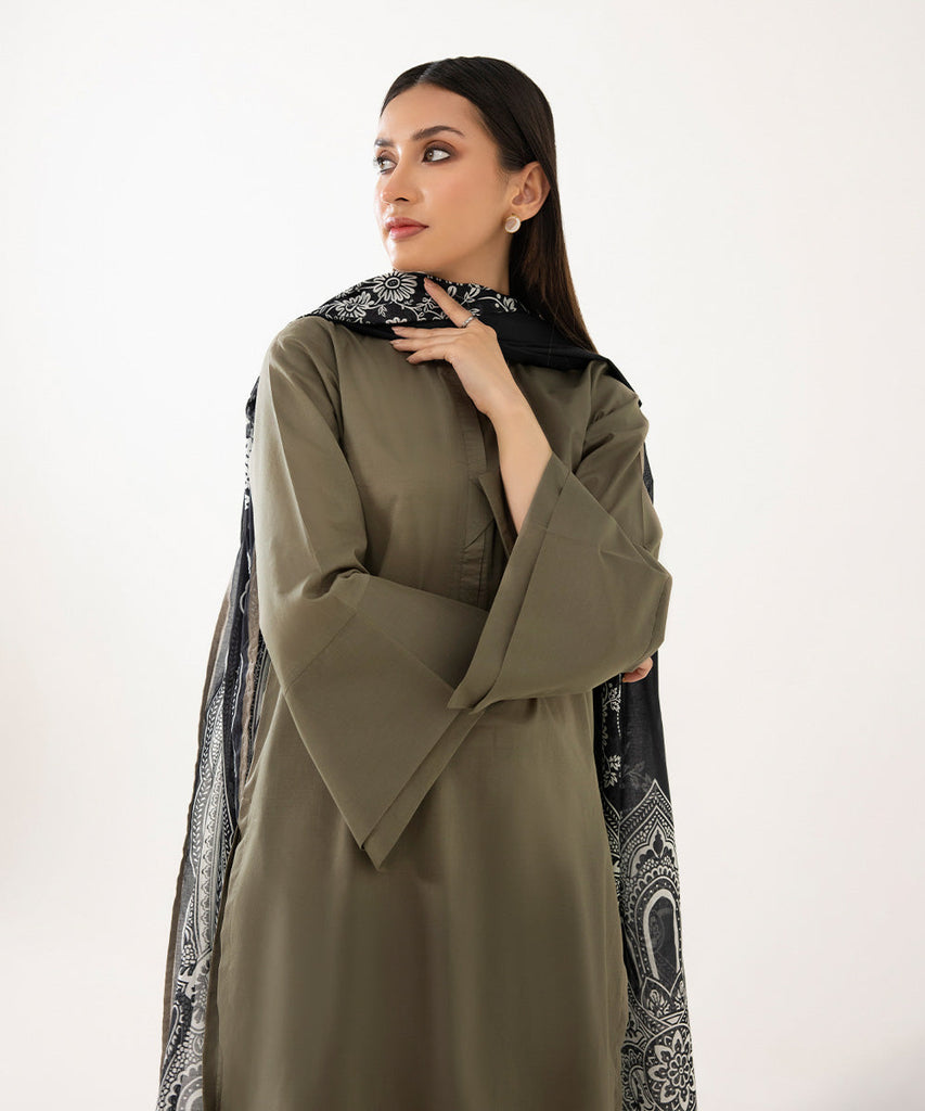 3-Piece Straight Kurta with Trousers & Dupatta This monochrome capsule brings together embroidery and prints to c...