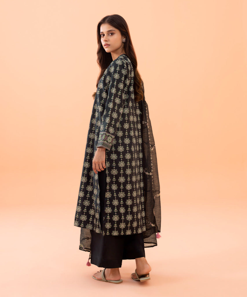 2-Piece Straight Kurta with Dupatta Our black intricately illustrated straight silhouette is paired with a raw net du...