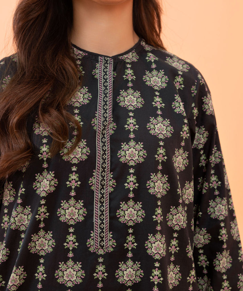 Printed Front, Printed Back, Full Printed Sleeves, Round Neckline With Slit