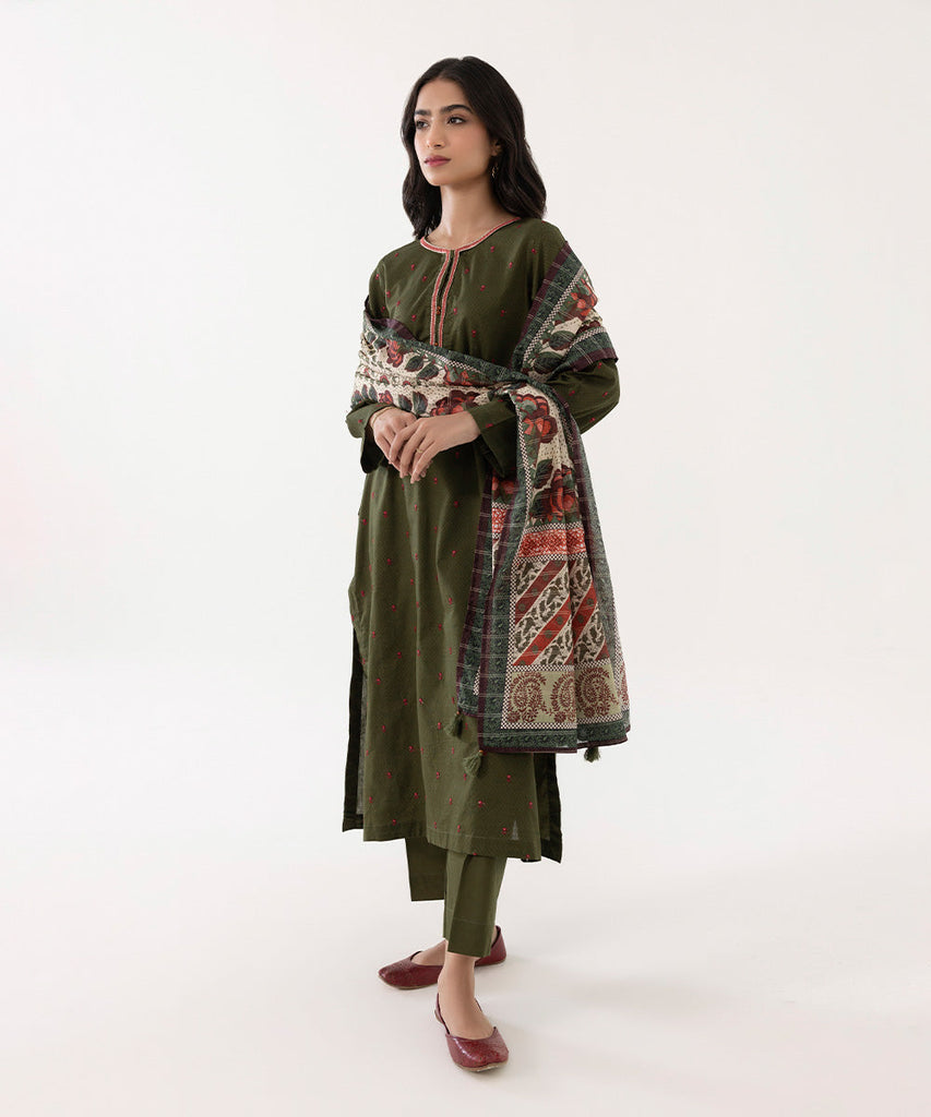 3-Piece Straight Kurta with Trousers & Dupatta Elevate your style with our green straight dobby silhouette paired...
