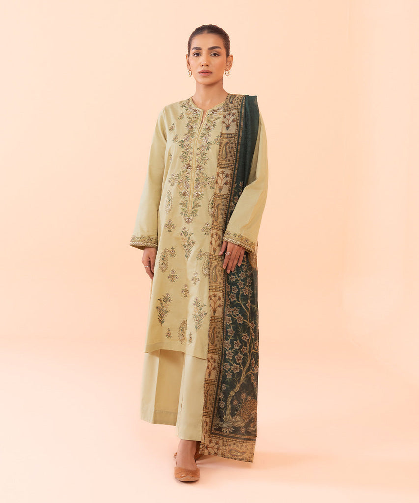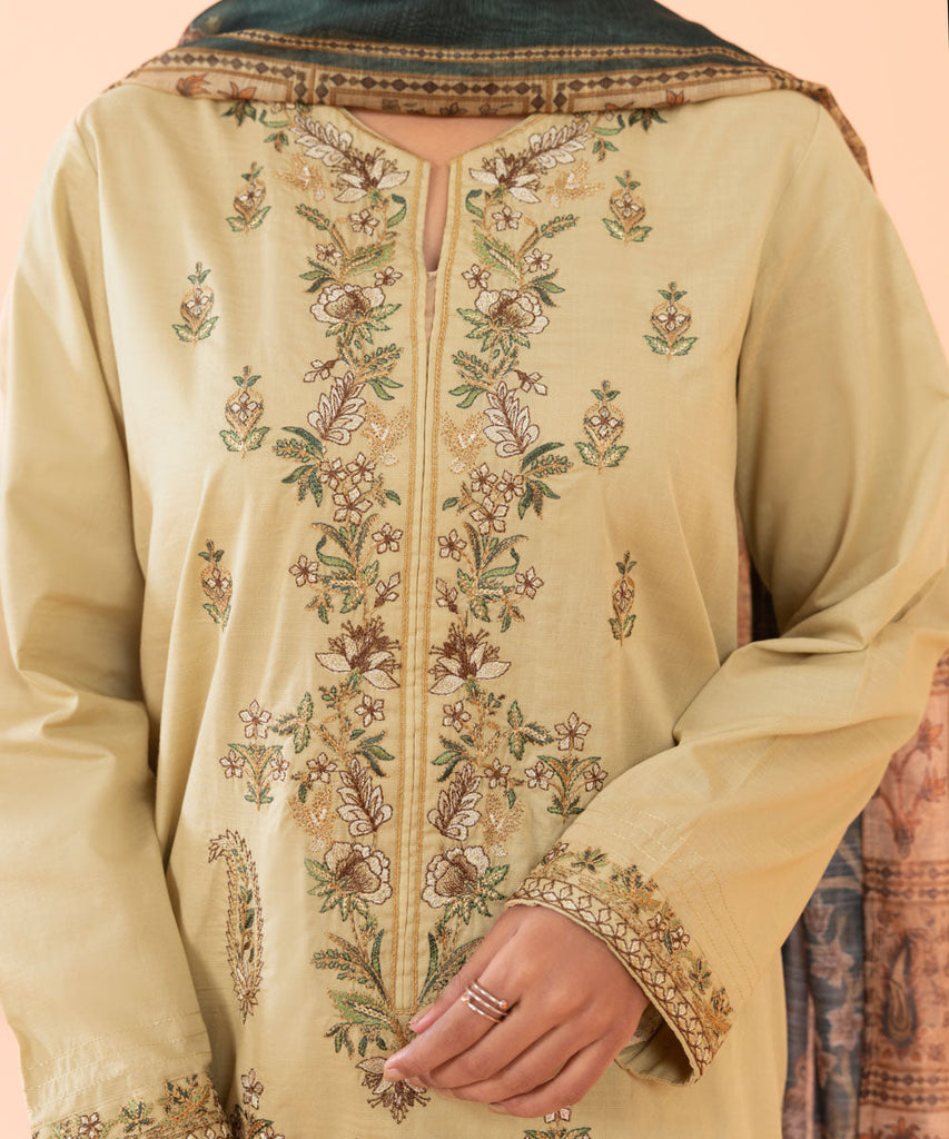 3-Piece Straight Kurta with Trousers & Dupatta Look exquisite in our beige three-piece featuring intricate embroi...