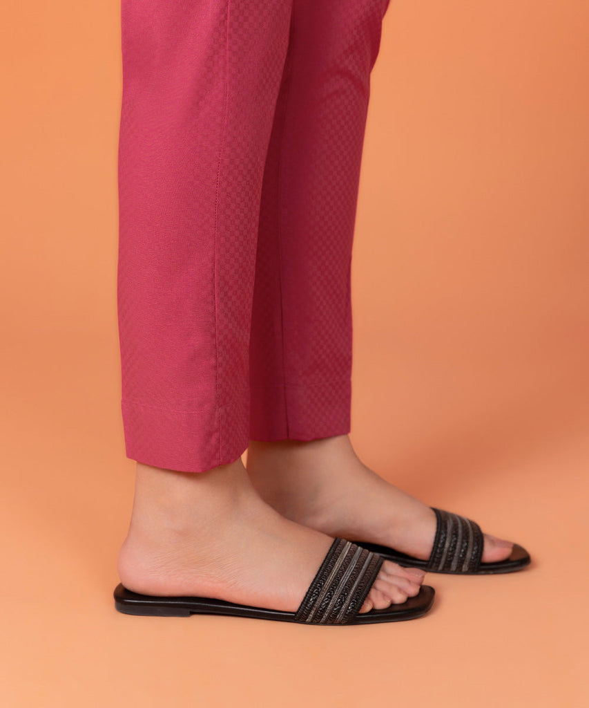 Elevate your outfit with our pink cigarette pants. Cigarette Pants Colour: Pink Fabric: Dobby SIZE & FIT Model he...