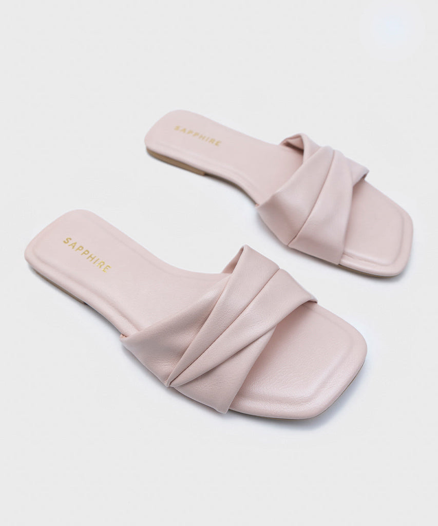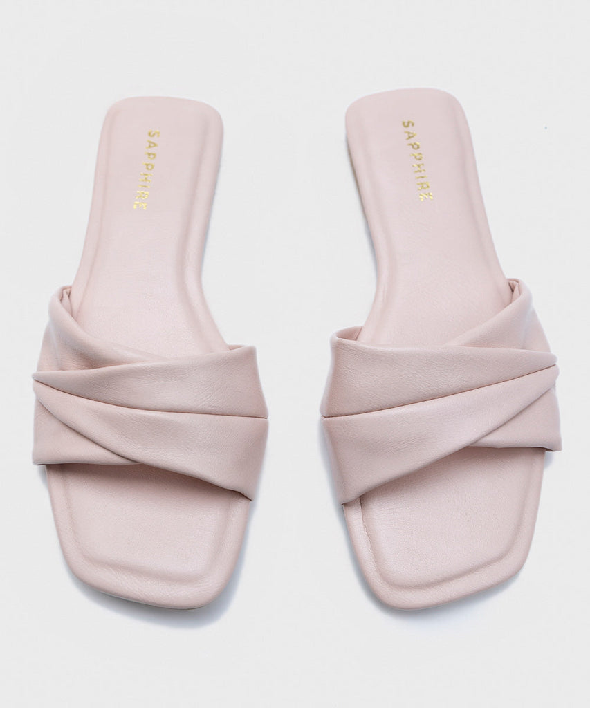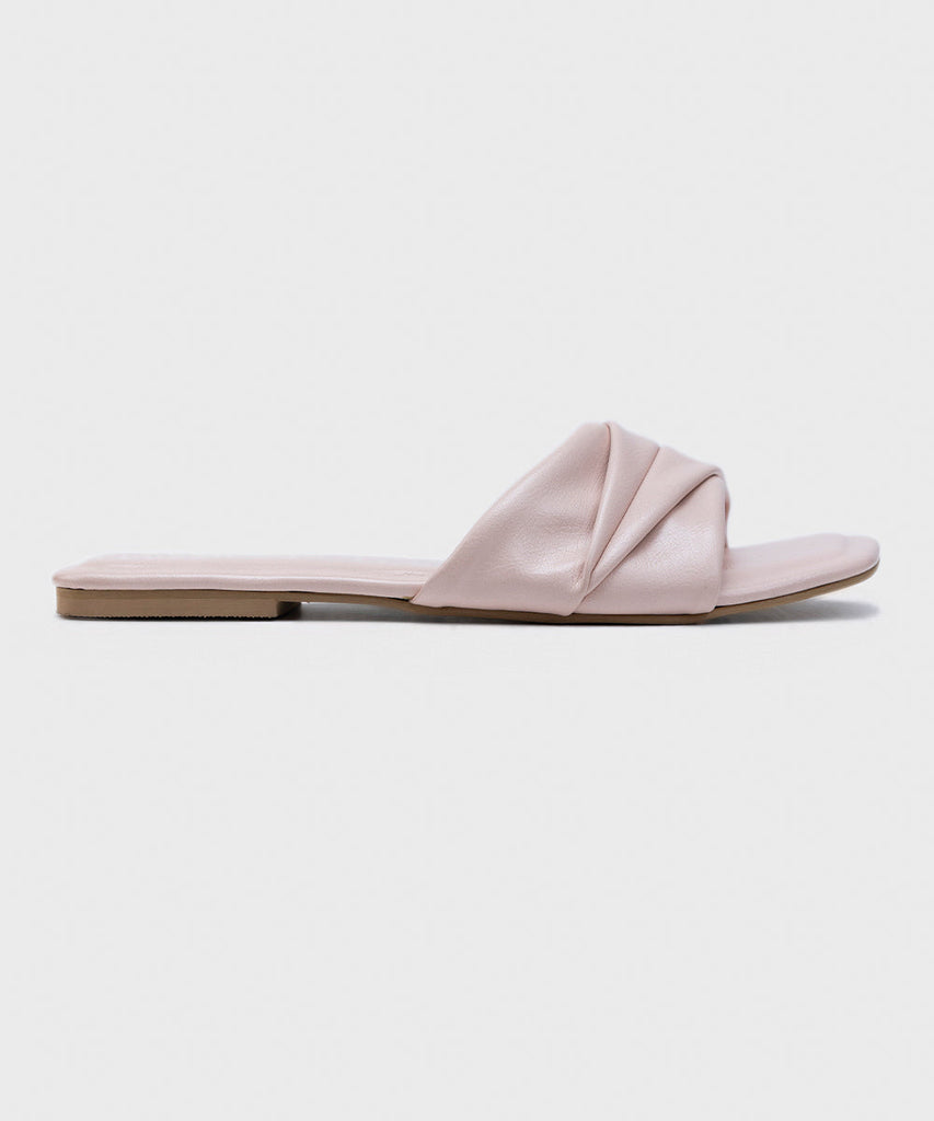 Elevate your look with our square-toe shaped light pink flats intricately folded upper.