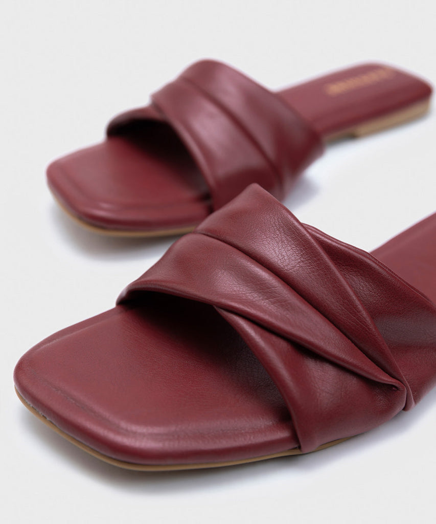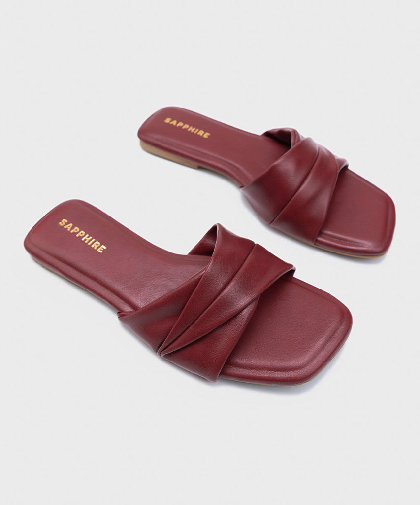 Elevate your look with our square-toe shaped red flats intricately folded upper.
