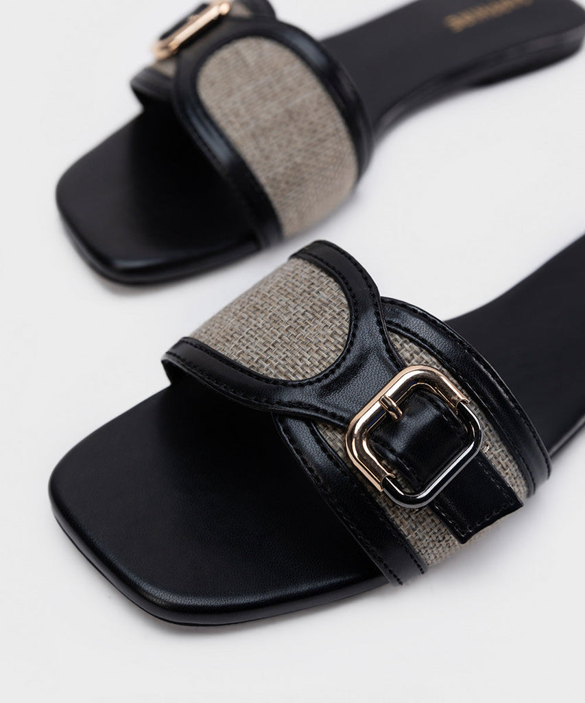 Elevate your style with our black canvas flats with buckle detail on top. Details: Colour: Black Material: Canvas ...