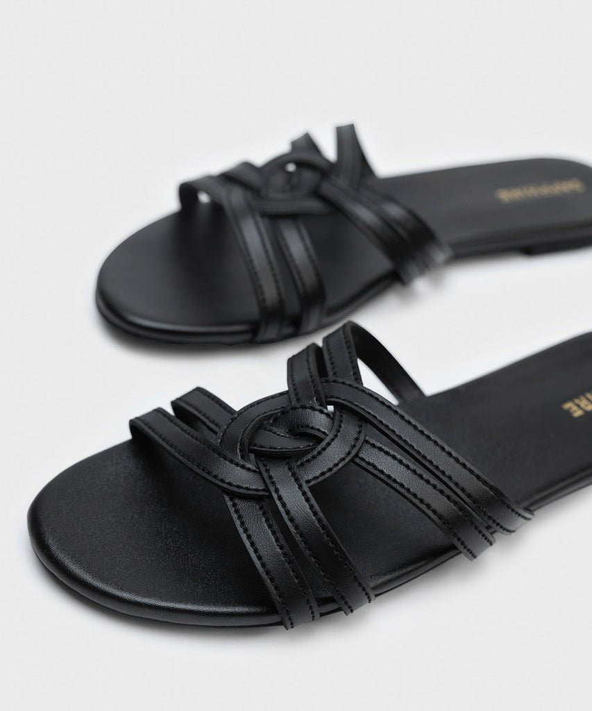 Invest in quality basics with our must-have black flats featuring knotted details.