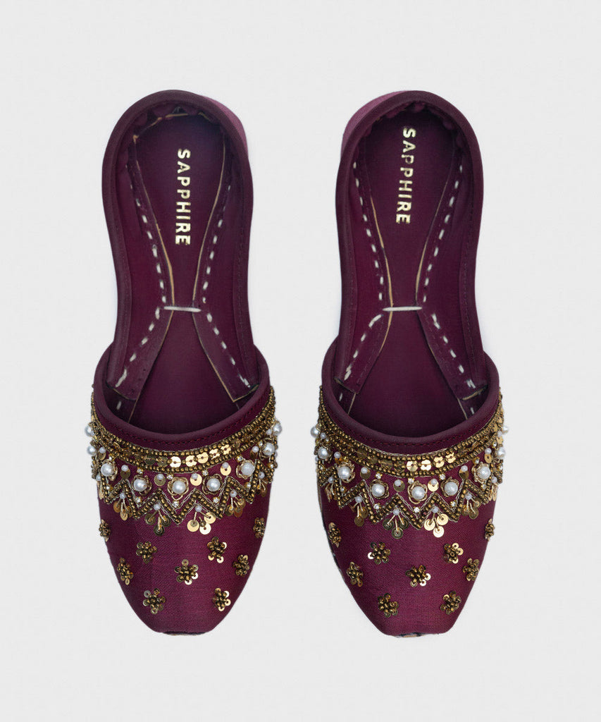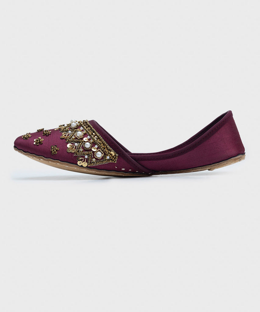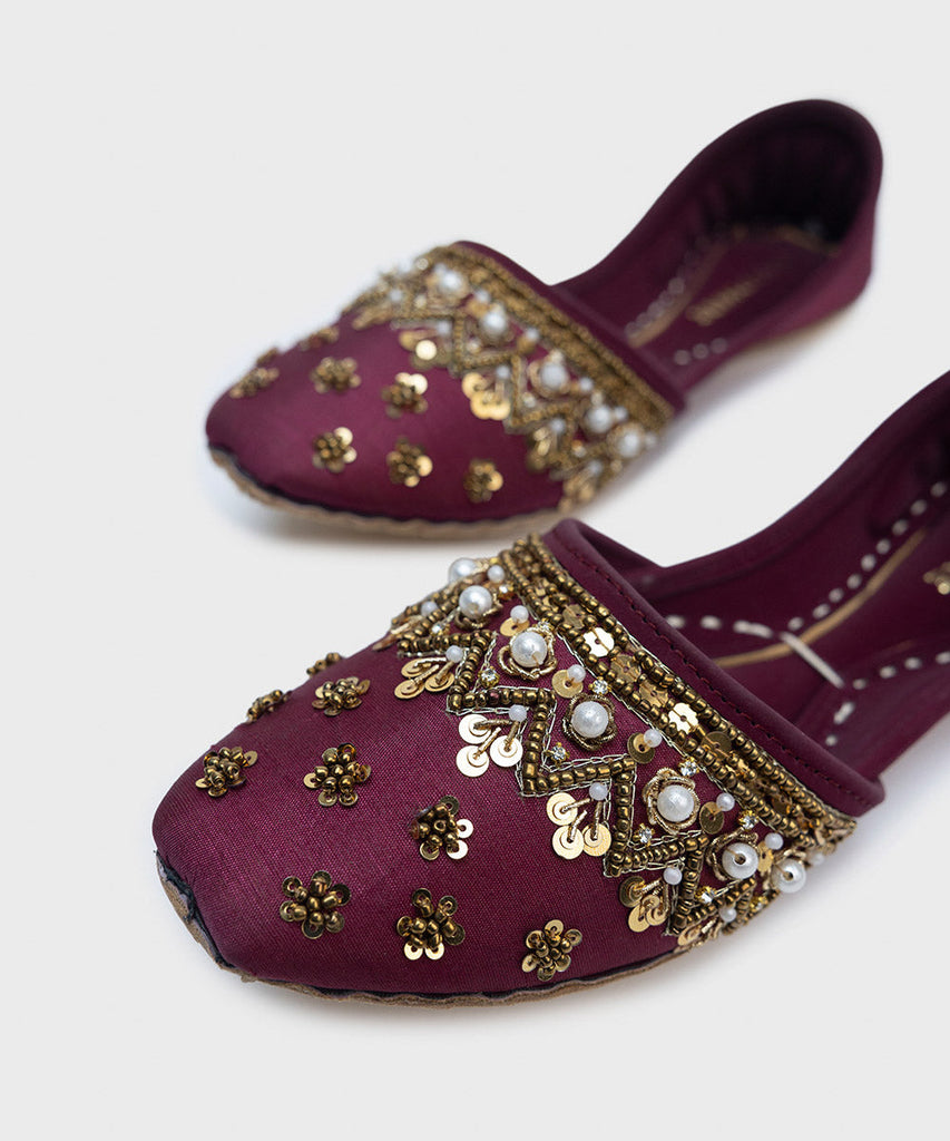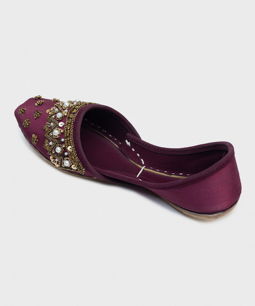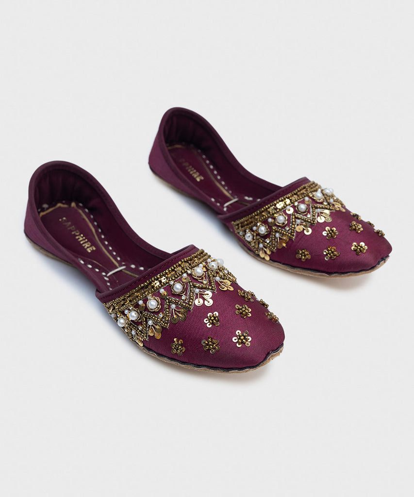 Make a festive statement in our plum khussas with embellishments.