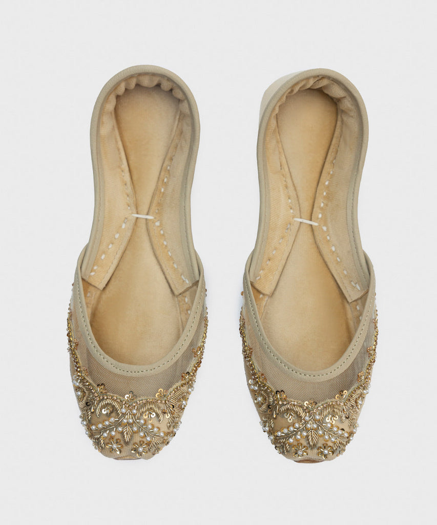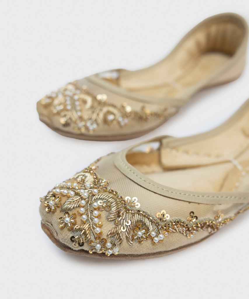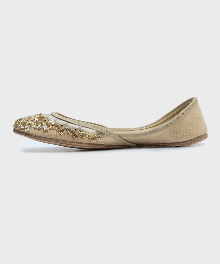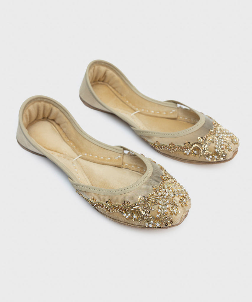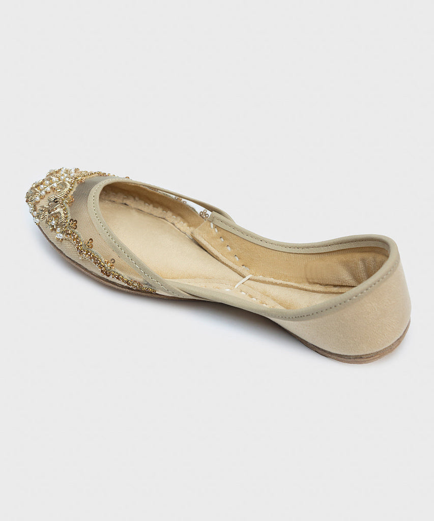 This festive season, enhance your look in our beige khussas with embellishments.