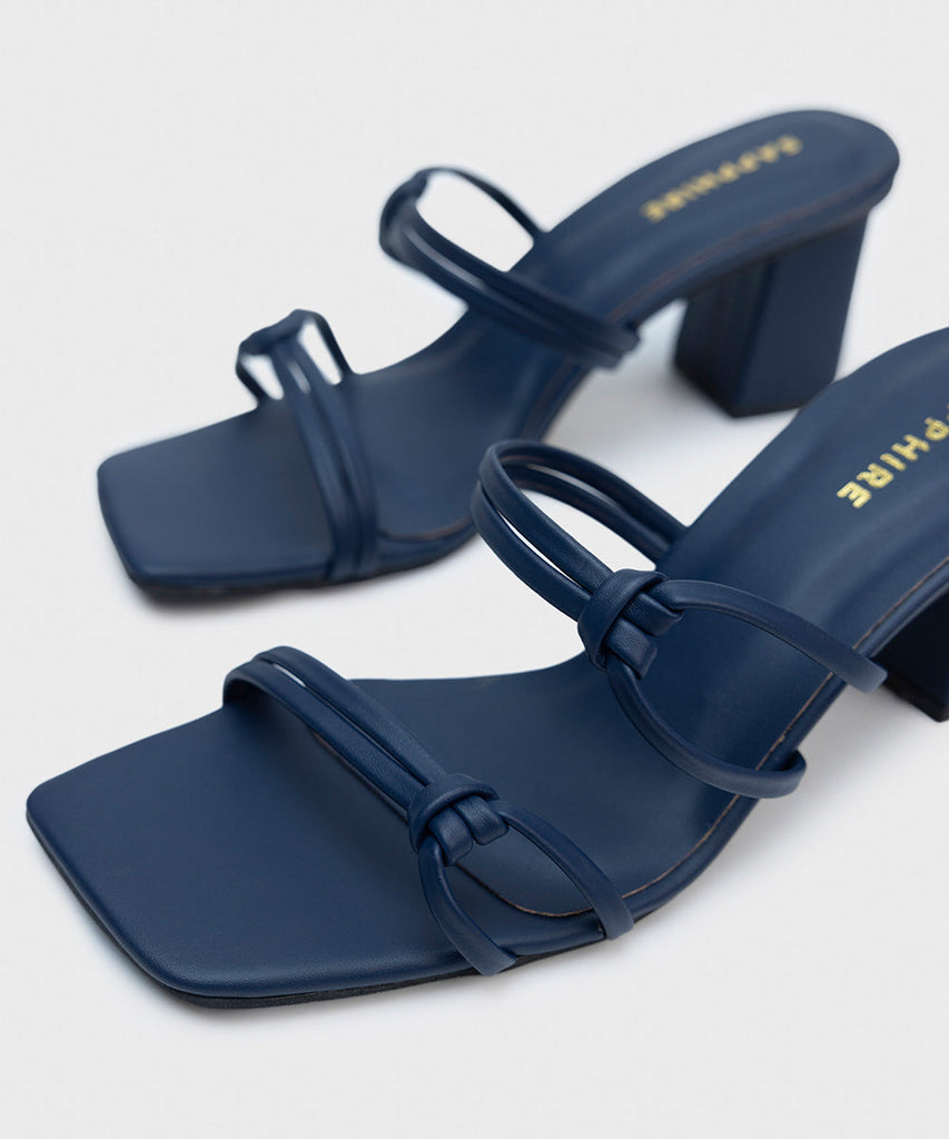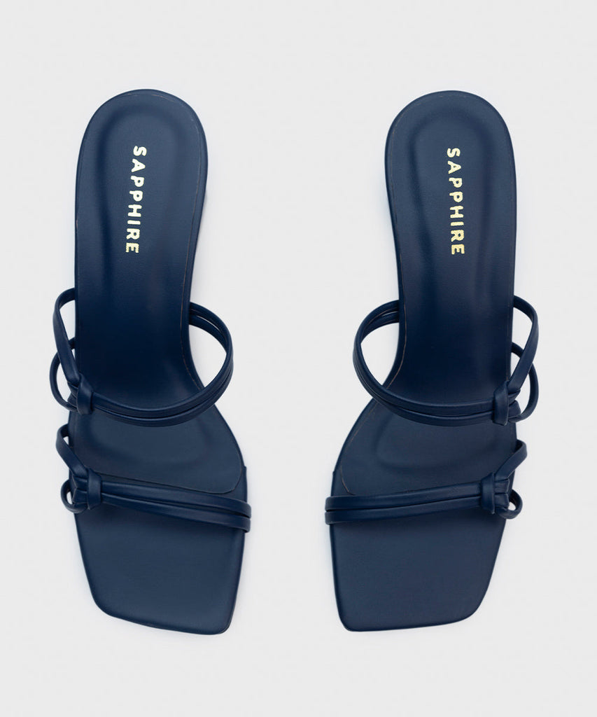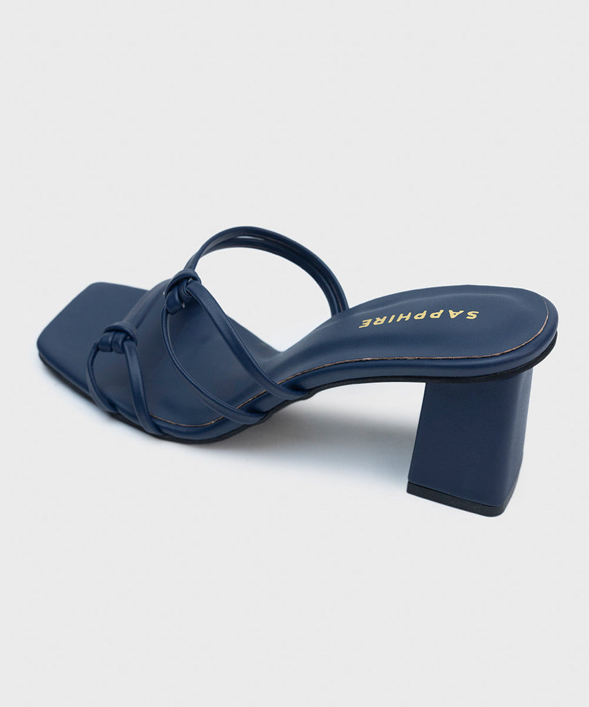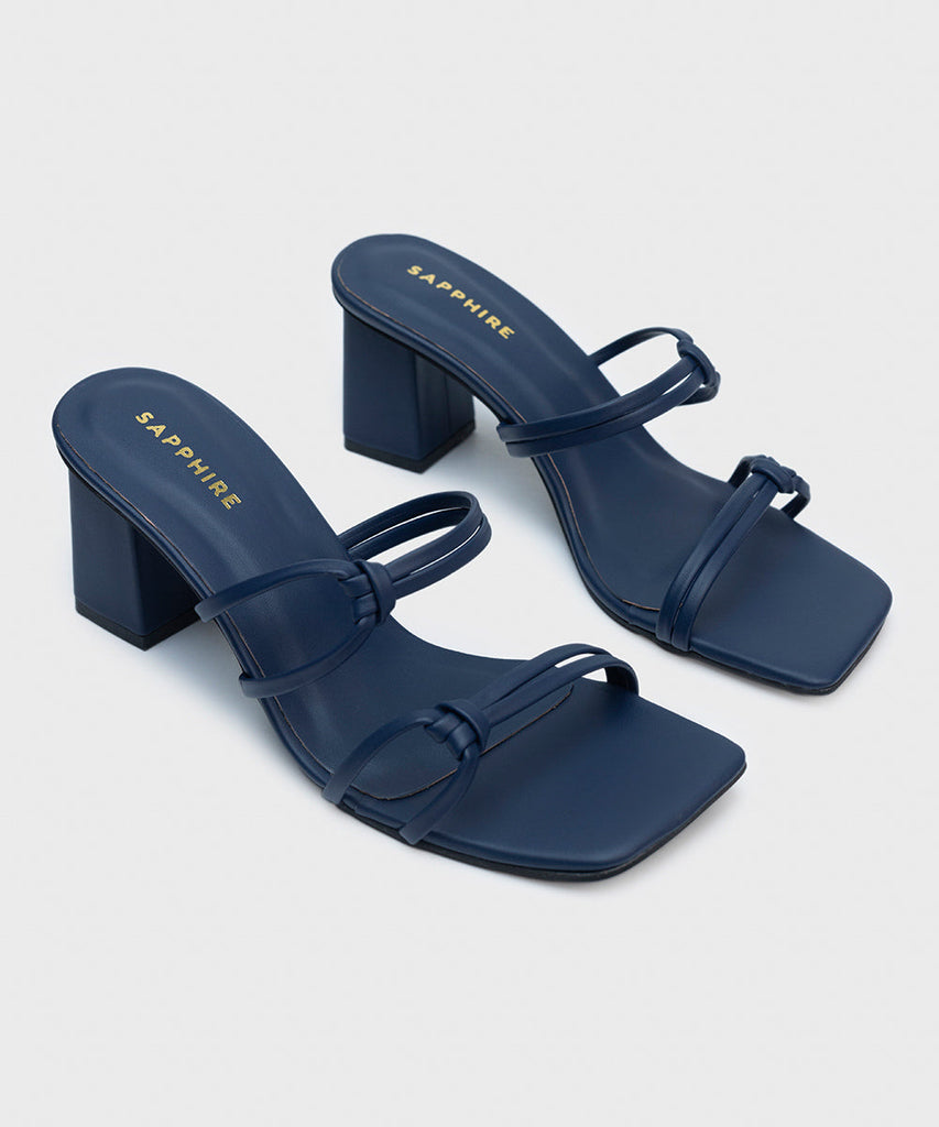 Elevate your seasonal style with our navy, square-toe, strappy block heels.