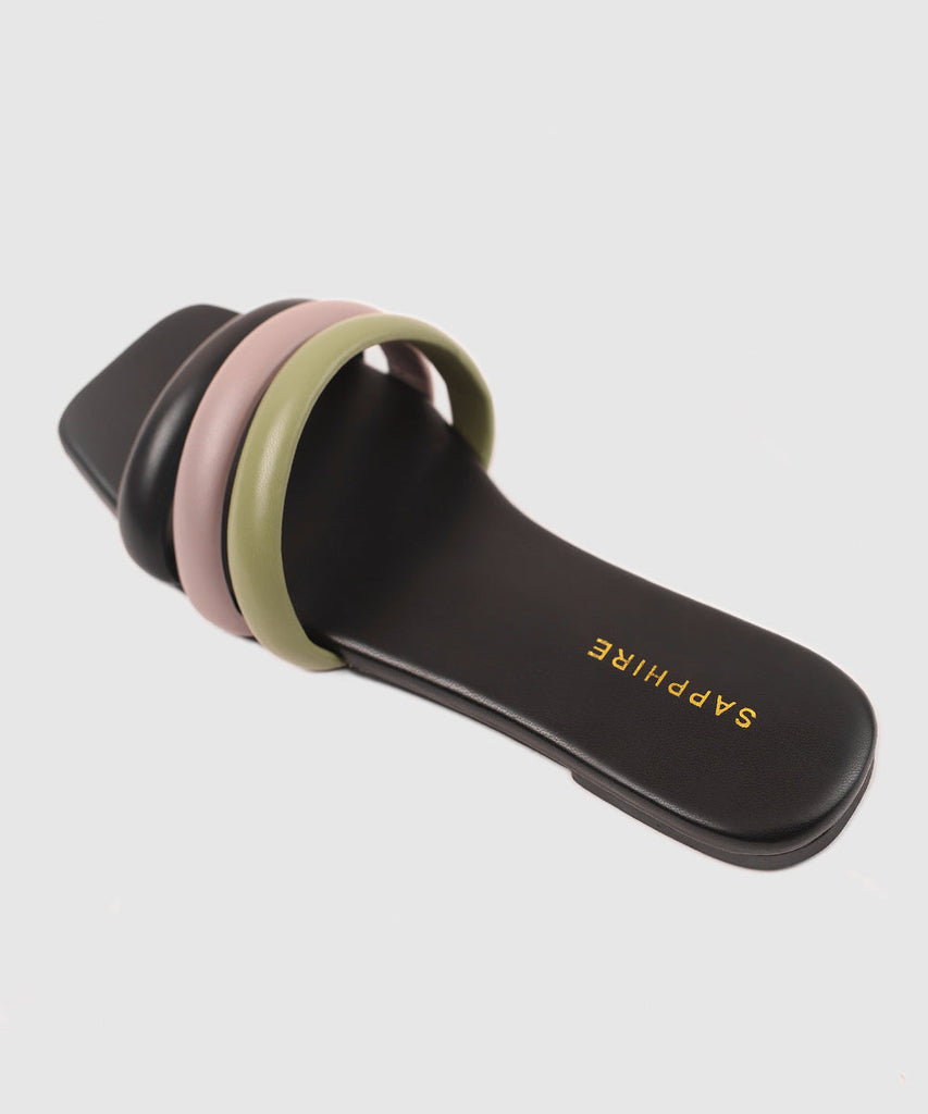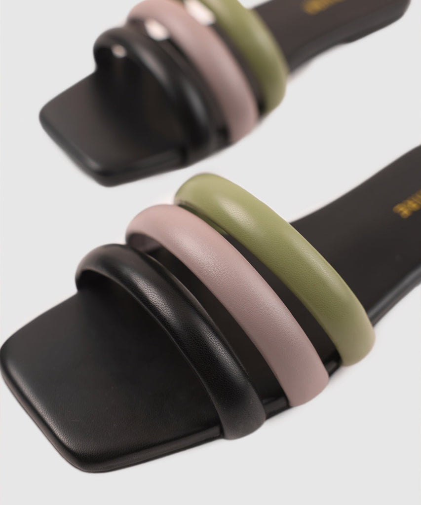Stay on-trend with our strappy black square-toe flats.