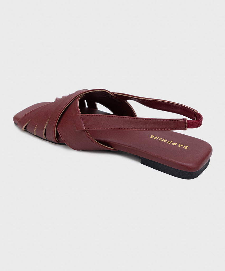 Opt for a bohemian vibe this summer in our chic maroon, weaved sandals with a square-toe.