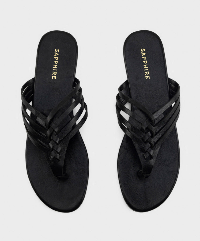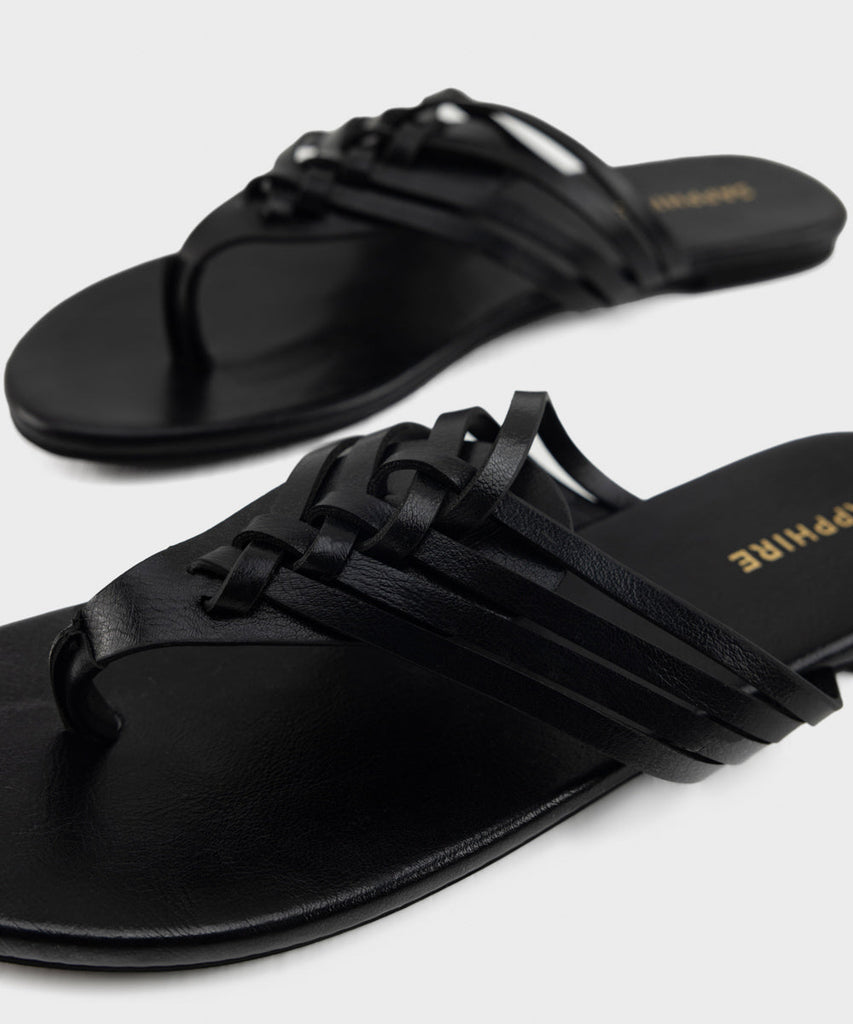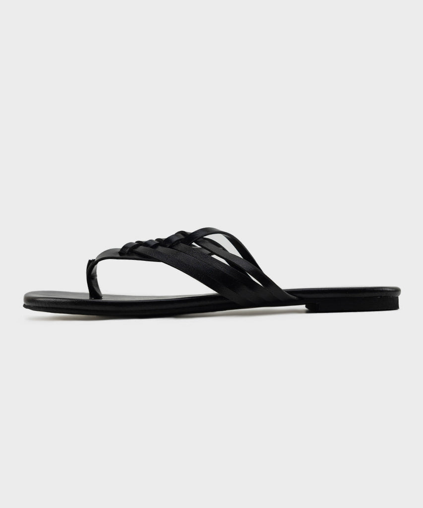 Opt for everyday comfort in our black round-toe flats with faux leather upper featuring weave details.