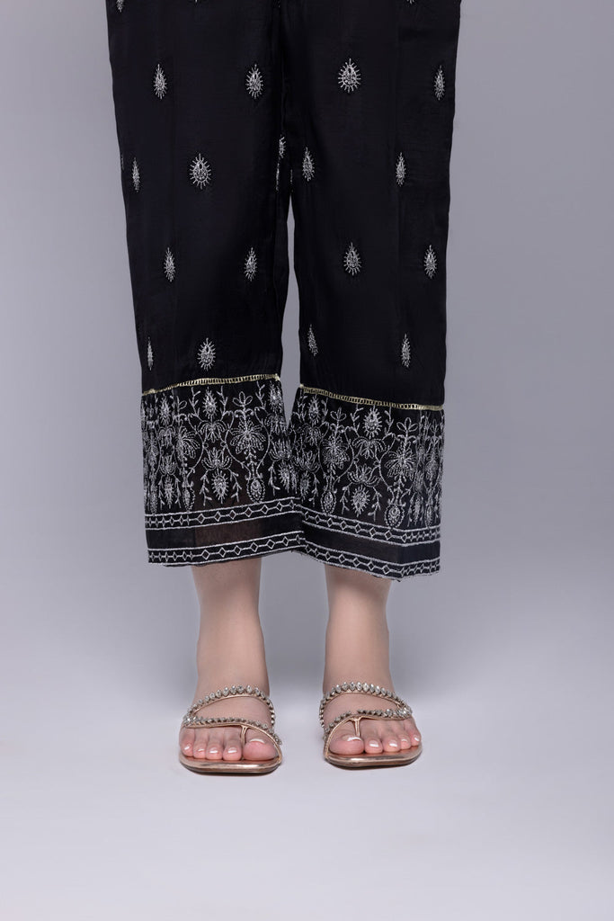 Culottes These viscose raw silk culottes are canvased on a black base beckoned with intricate embroidery details aro...