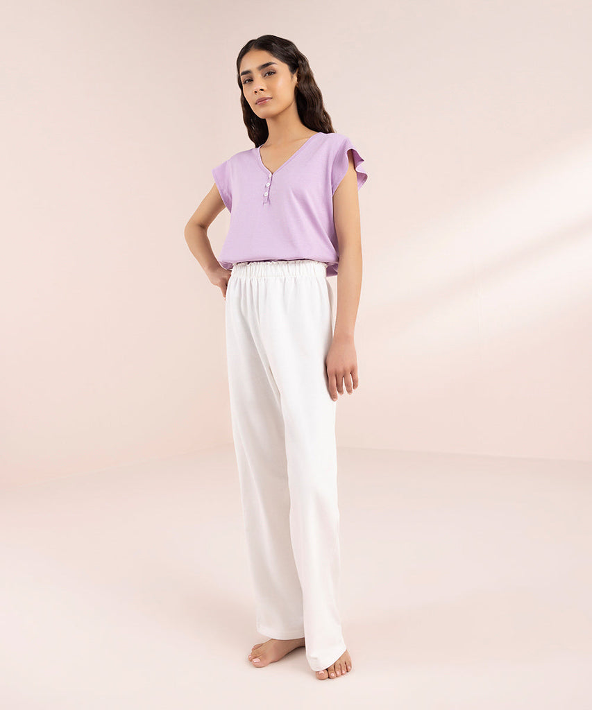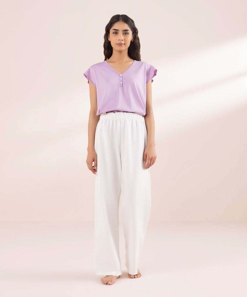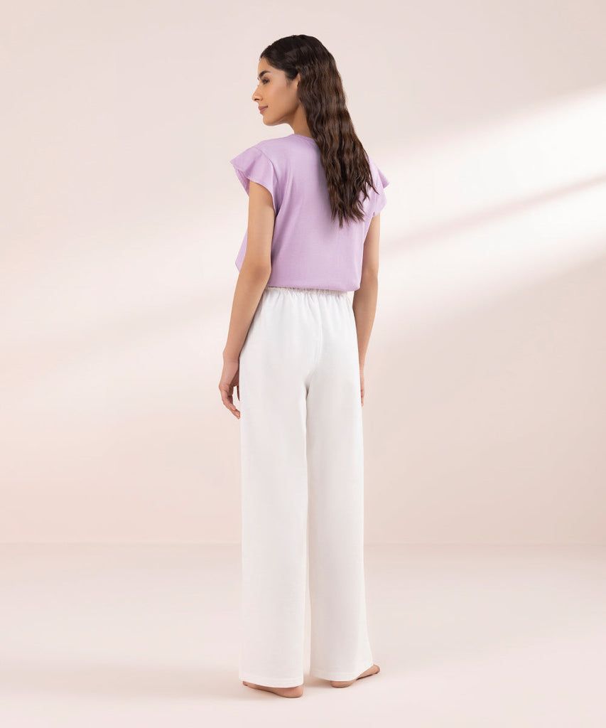 Loose fit solid trousers with elasticated waistband. Details: Colour: WhiteFabric: 100% Cotton SIZE & FITModel he...