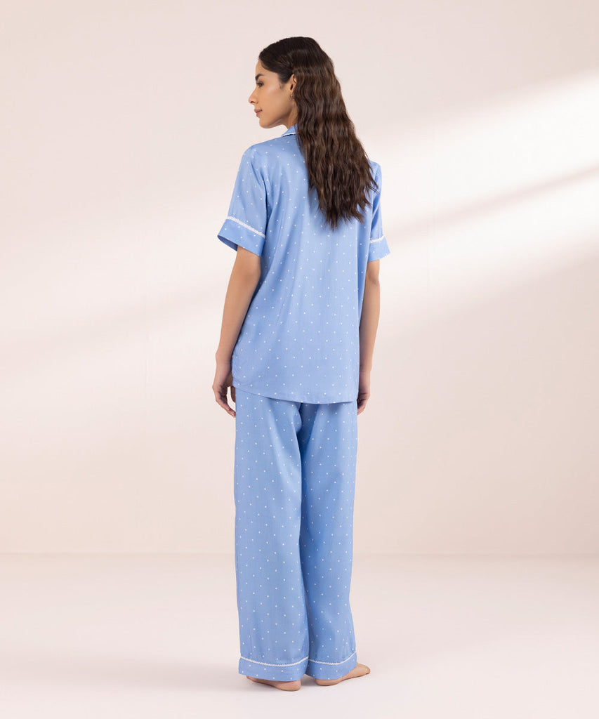 Loose fit, printed trousers in soft and breathable fabric with extended waistband and lace detail.