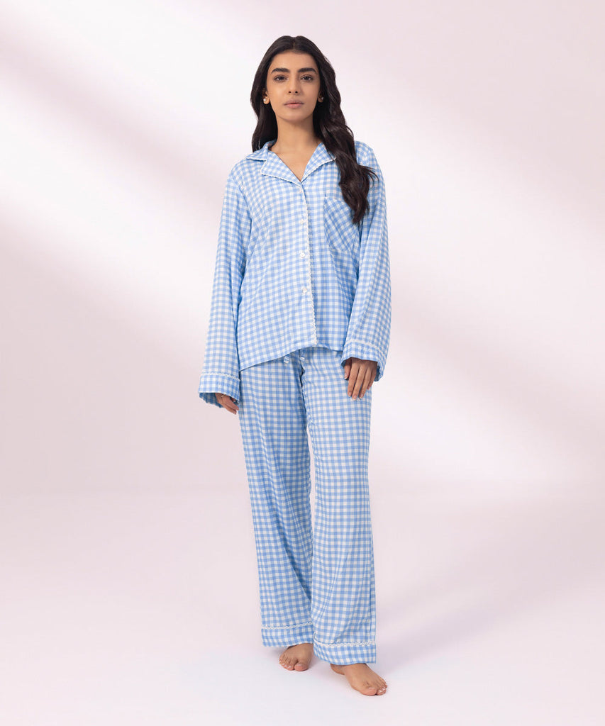 Printed PJ set in soft and breathable fabric. Notch collar and button through opening with lace detail. Full sleeves ...