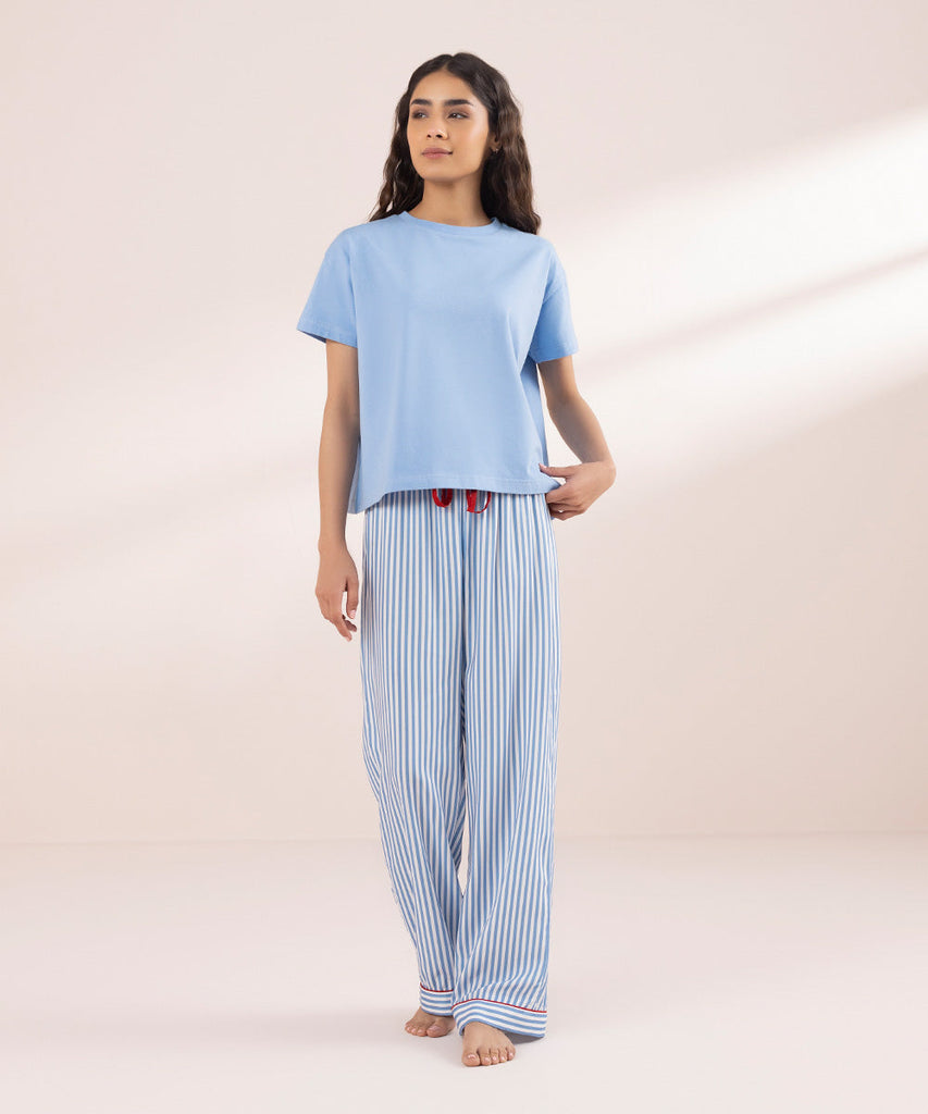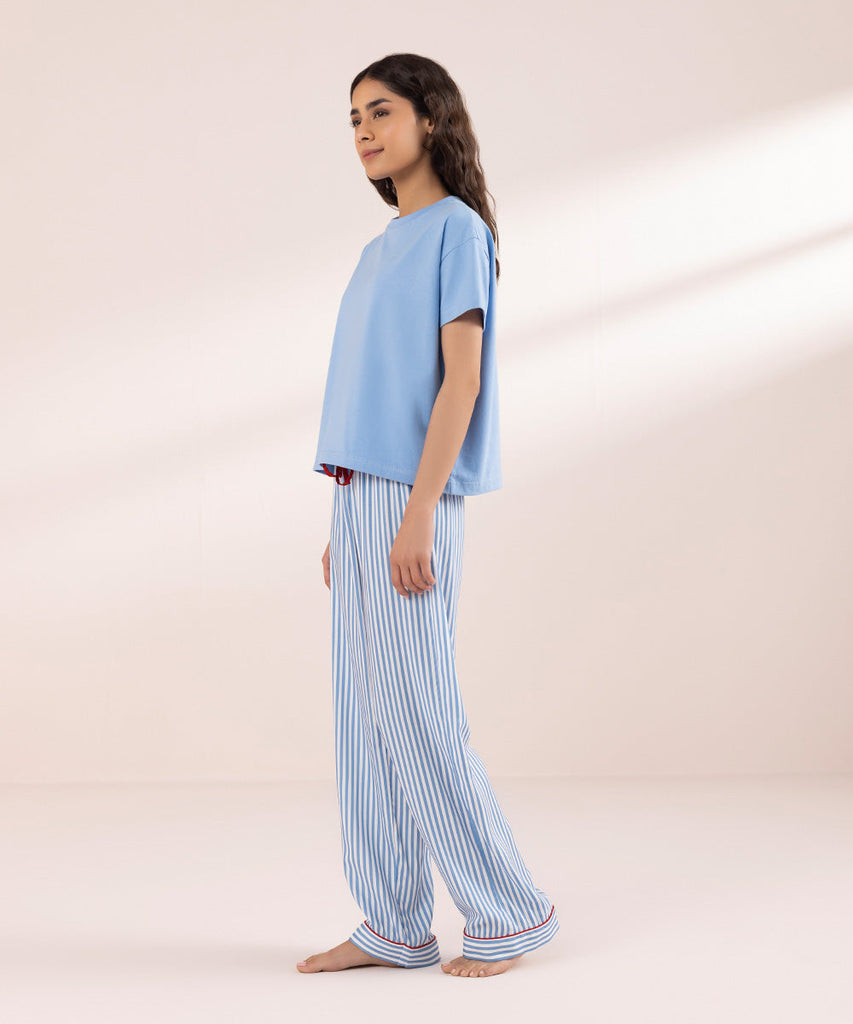 Round neck T-shirt with short sleeves. Details: Colour: White & BlueFabric: 100% Cotton SIZE & FITModel heigh...