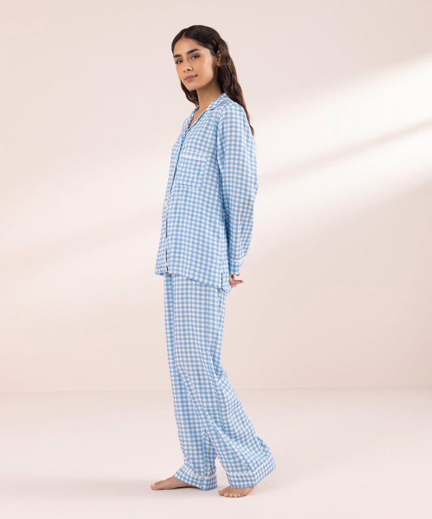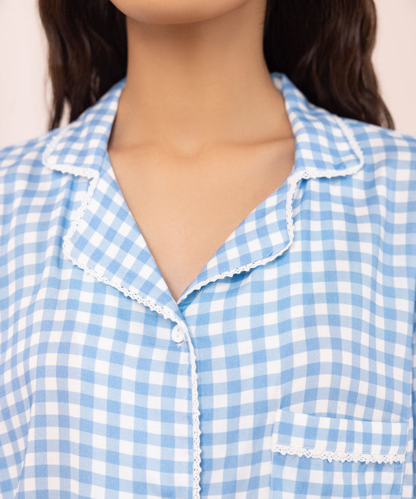 Printed PJ set in soft and breathable fabric. Notch collar and button through opening with lace detail. Full sleeves ...