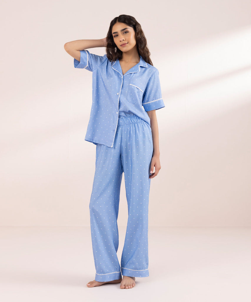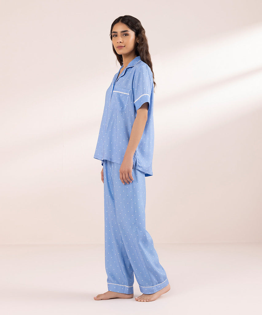 Printed button through shirt in soft and breathable fabric. Notch collar and button through opening with lace detail....