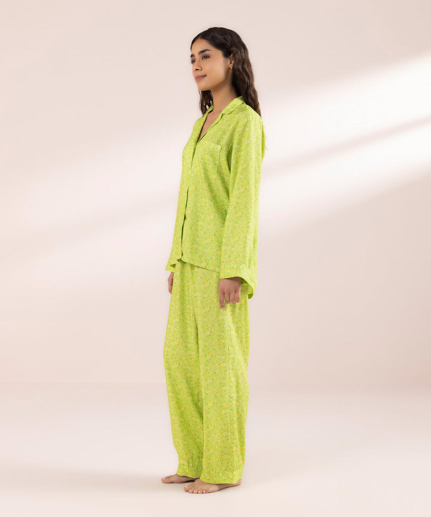 Printed PJ set in soft and breathable fabric. Sleek notch collar and button through opening. Full sleeves with front ...