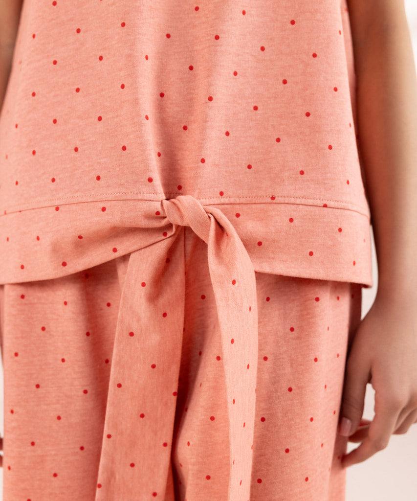 Round neck short sleeves printed T-shirt with front tie detail. Details: Colour: Peach PinkFabric: 100% Cotton SIZE &...
