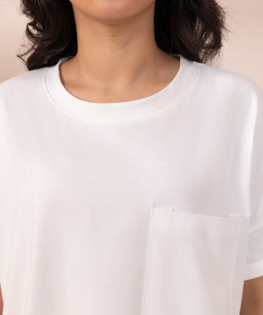 Loose-fit T-shirt with round neck and short sleeves. Patch pocket.